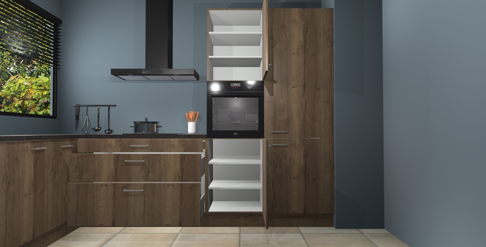 Met een modern, tijdloos design en ruime opslagruimte, zult u zich in no-time thuis voelen in uw nieuwe keuken. Uw leven wordt eenvoudiger met de soft-close deuren die voor het ultieme stille comfort zorgen - geen geluid dat u stoort terwijl u kookt. Ook is de keuken voorzien van 5 ingebouwde apparaten: een oven, inductie kookplaat, afzuigkap, vaatwasser en koelkast. Deze kunnen gemakkelijk na bestelling worden bijgewerkt naar AEG - waardoor uw luxe ervaring compleet is.