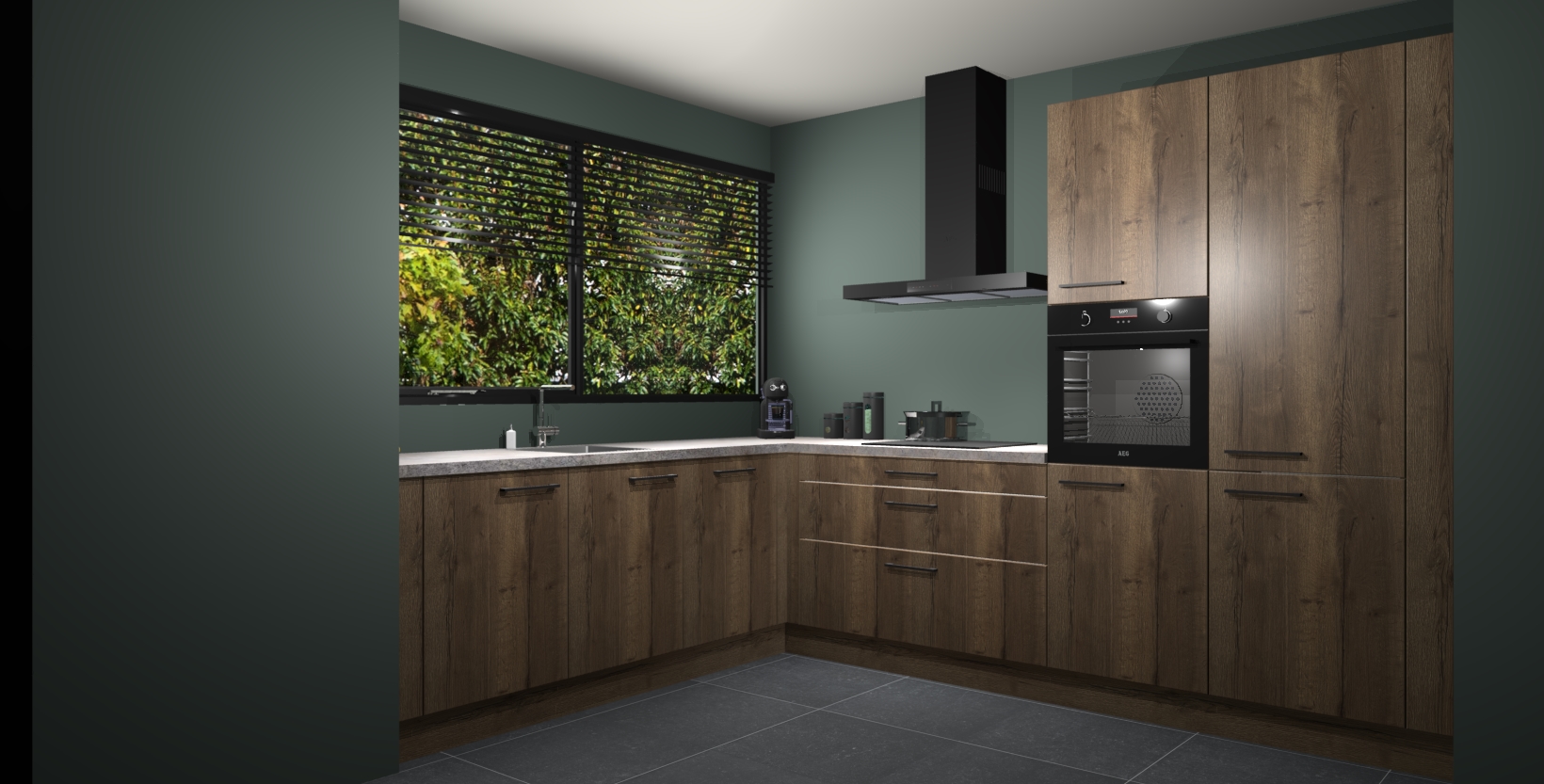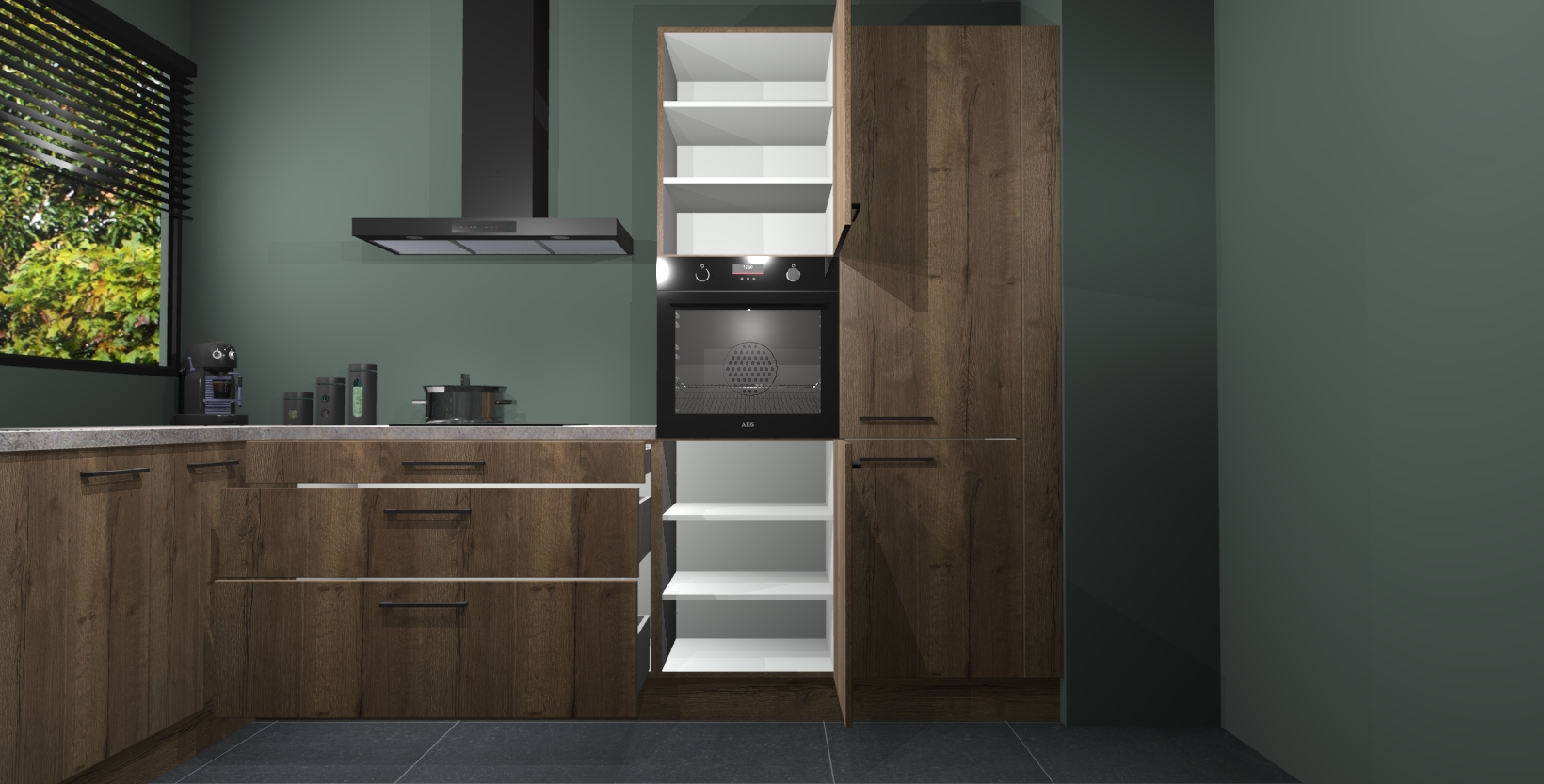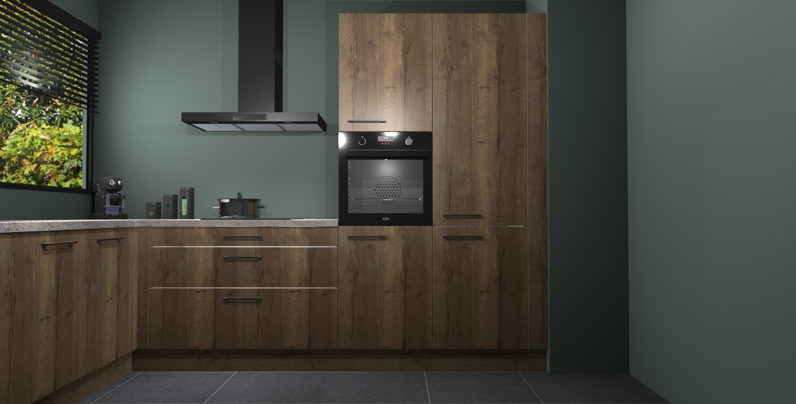 Met een modern, tijdloos design en ruime opslagruimte, zult u zich in no-time thuis voelen in uw nieuwe keuken. Uw leven wordt eenvoudiger met de soft-close deuren die voor het ultieme stille comfort zorgen - geen geluid dat u stoort terwijl u kookt. Ook is de keuken voorzien van 5 ingebouwde apparaten: een oven, inductie kookplaat, afzuigkap, vaatwasser en koelkast. Deze kunnen gemakkelijk na bestelling worden bijgewerkt naar AEG - waardoor uw luxe ervaring compleet is.