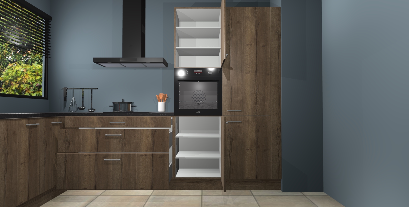 Met een modern, tijdloos design en ruime opslagruimte, zult u zich in no-time thuis voelen in uw nieuwe keuken. Uw leven wordt eenvoudiger met de soft-close deuren die voor het ultieme stille comfort zorgen - geen geluid dat u stoort terwijl u kookt. Ook is de keuken voorzien van 5 ingebouwde apparaten: een oven, inductie kookplaat, afzuigkap, vaatwasser en koelkast. Deze kunnen gemakkelijk na bestelling worden bijgewerkt naar AEG - waardoor uw luxe ervaring compleet is.