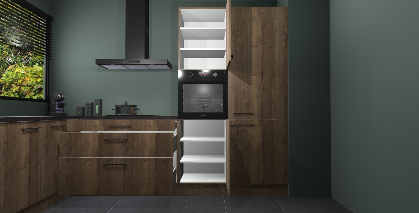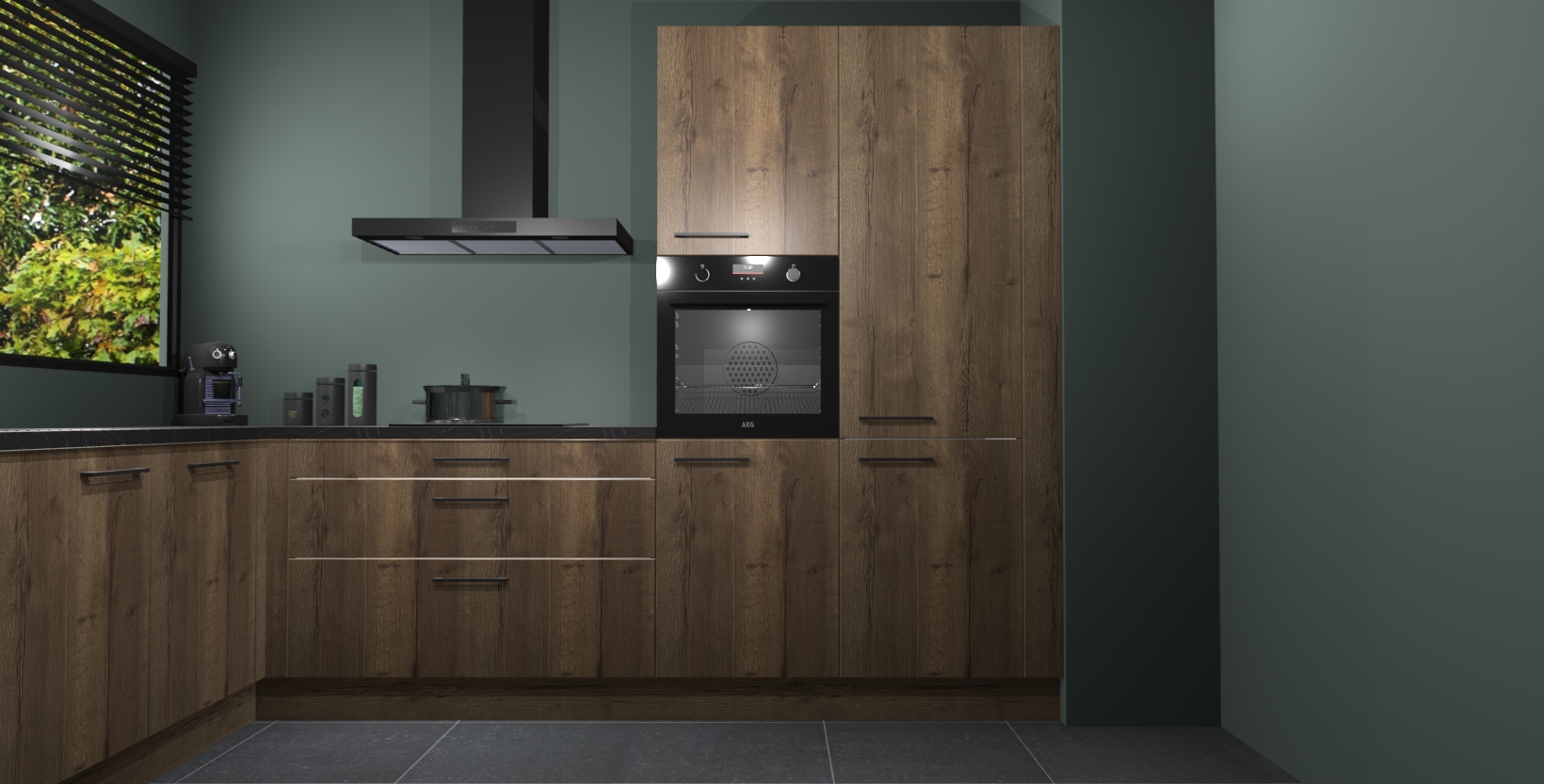 Met een modern, tijdloos design en ruime opslagruimte, zult u zich in no-time thuis voelen in uw nieuwe keuken. Uw leven wordt eenvoudiger met de soft-close deuren die voor het ultieme stille comfort zorgen - geen geluid dat u stoort terwijl u kookt. Ook is de keuken voorzien van 5 ingebouwde apparaten: een oven, inductie kookplaat, afzuigkap, vaatwasser en koelkast. Deze kunnen gemakkelijk na bestelling worden bijgewerkt naar AEG - waardoor uw luxe ervaring compleet is.