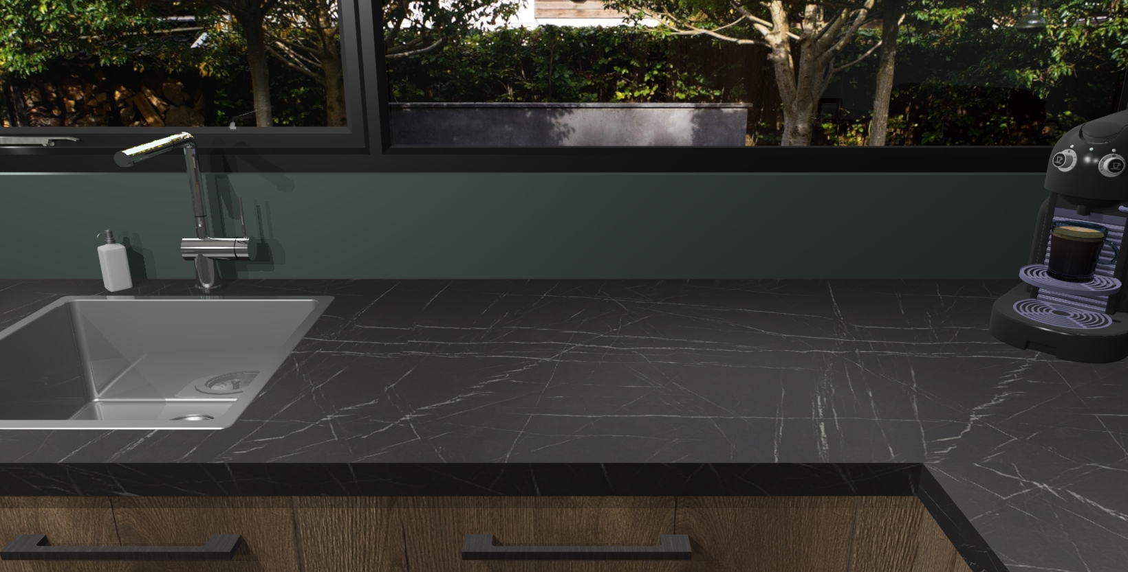 - Bij een hoekwerkblad zijn de hoeken in gevreesd en op maat gemaakt