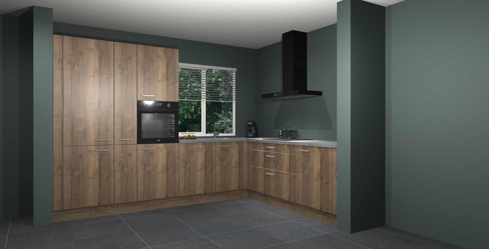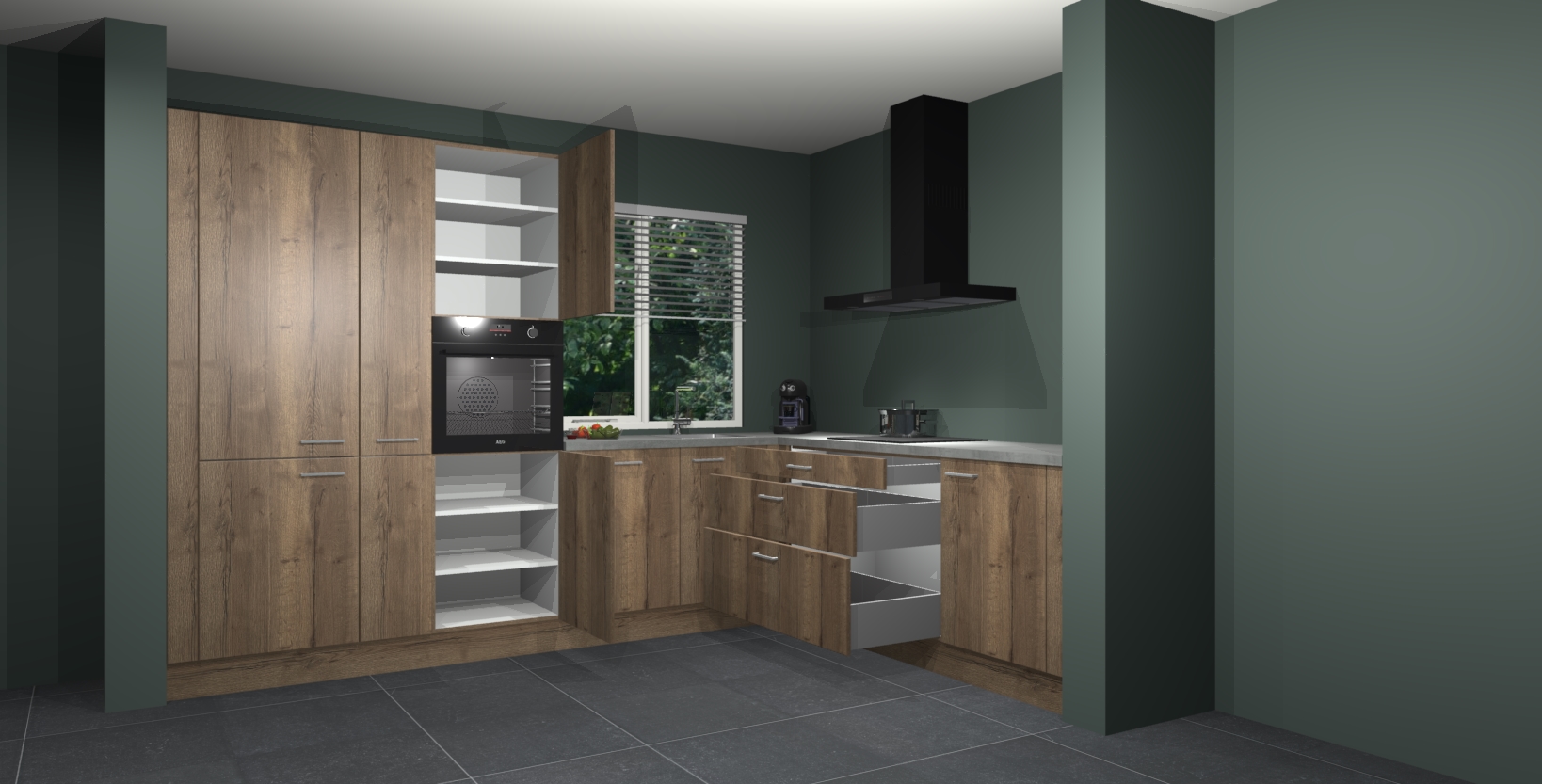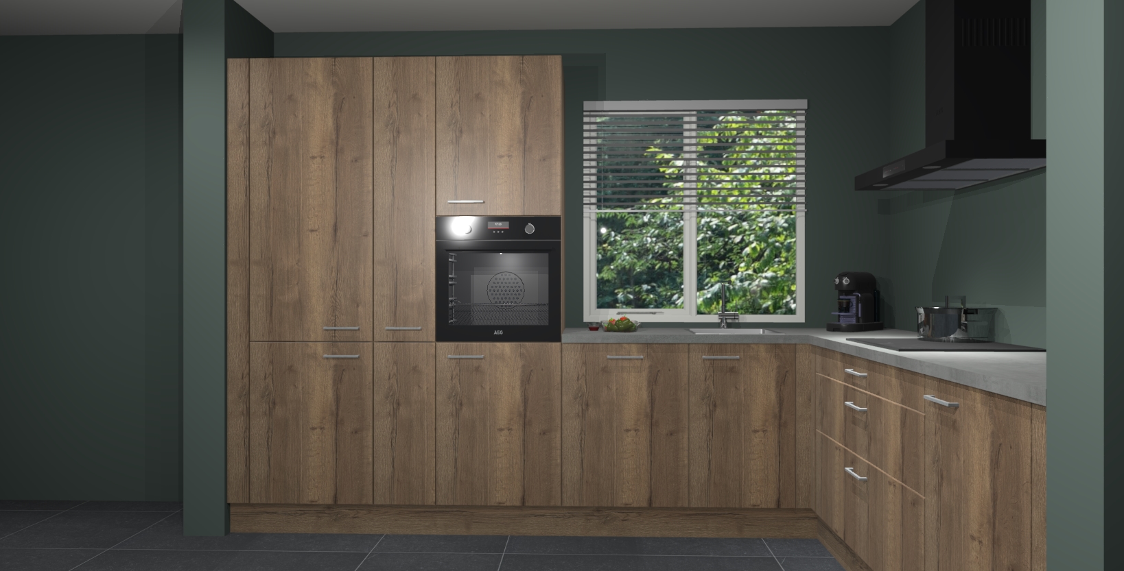 Met een modern, tijdloos design en ruime opslagruimte, zult u zich in no-time thuis voelen in uw nieuwe keuken. Uw leven wordt eenvoudiger met de soft-close deuren die voor het ultieme stille comfort zorgen - geen geluid dat u stoort terwijl u kookt. Ook is de keuken voorzien van 5 ingebouwde apparaten: een oven, inductie kookplaat, afzuigkap, vaatwasser en koelkast. Deze kunnen gemakkelijk na bestelling worden bijgewerkt naar AEG - waardoor uw luxe ervaring compleet is.
