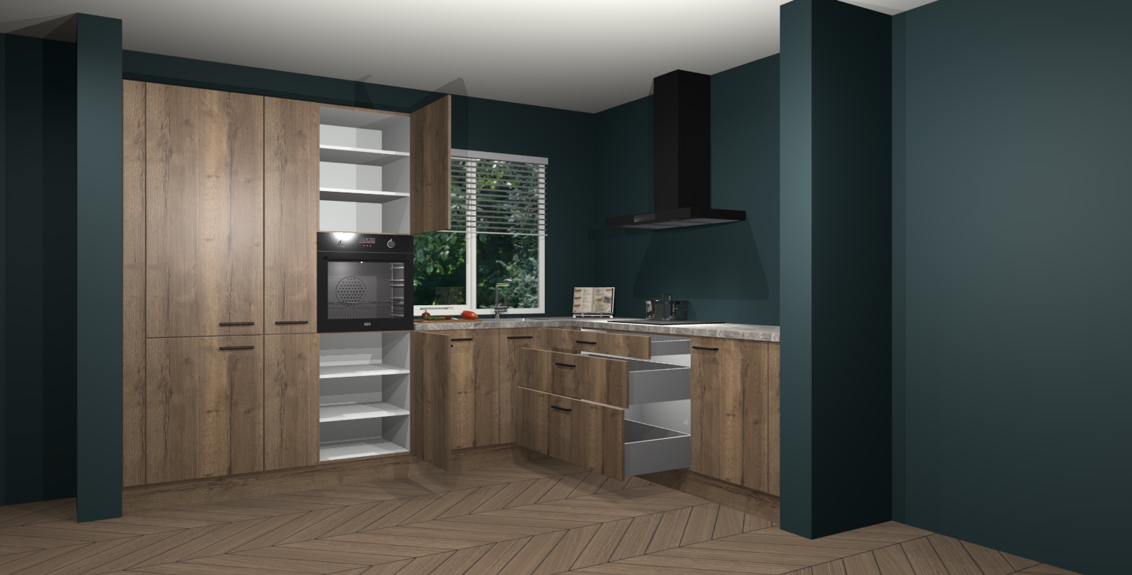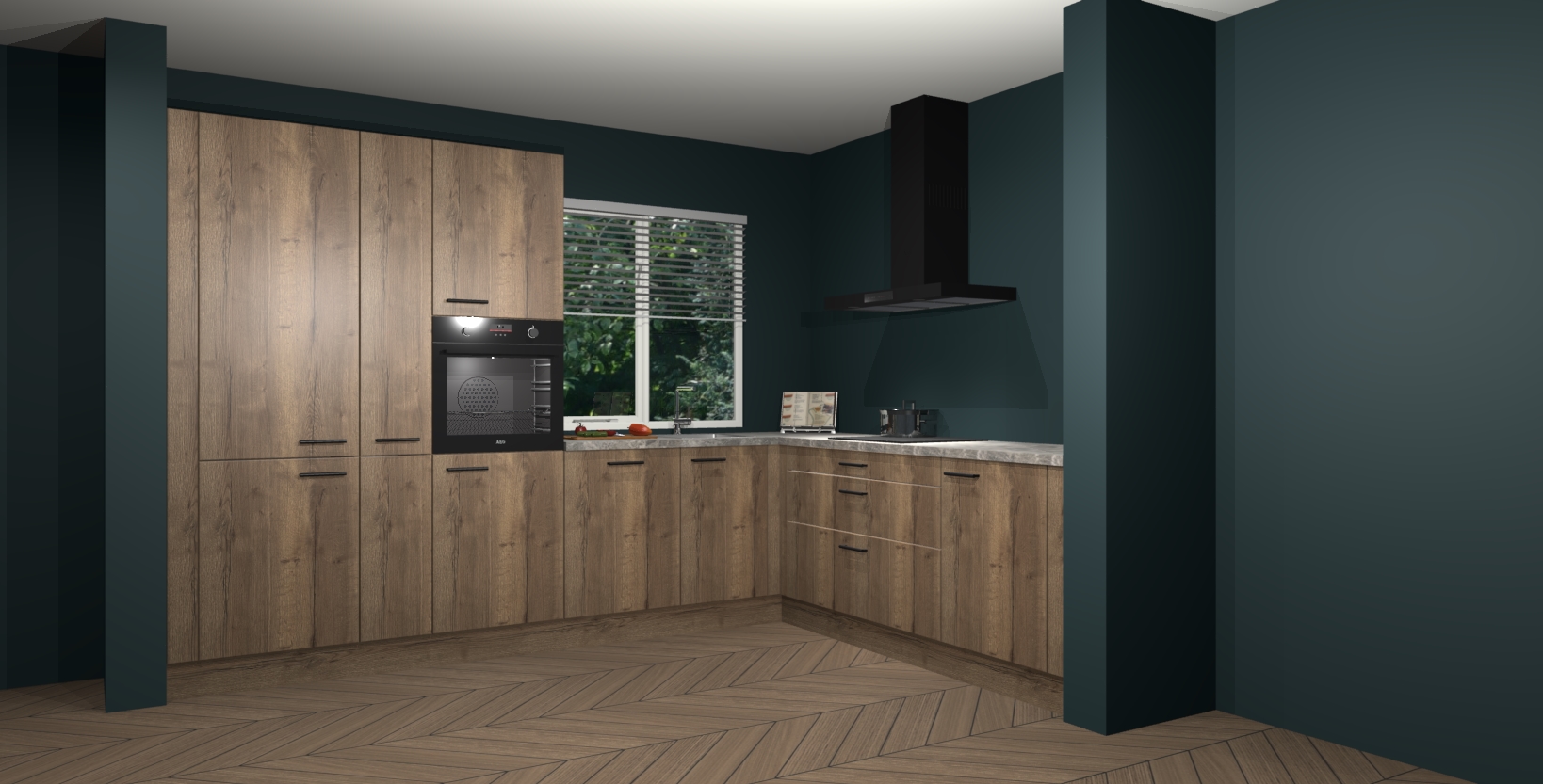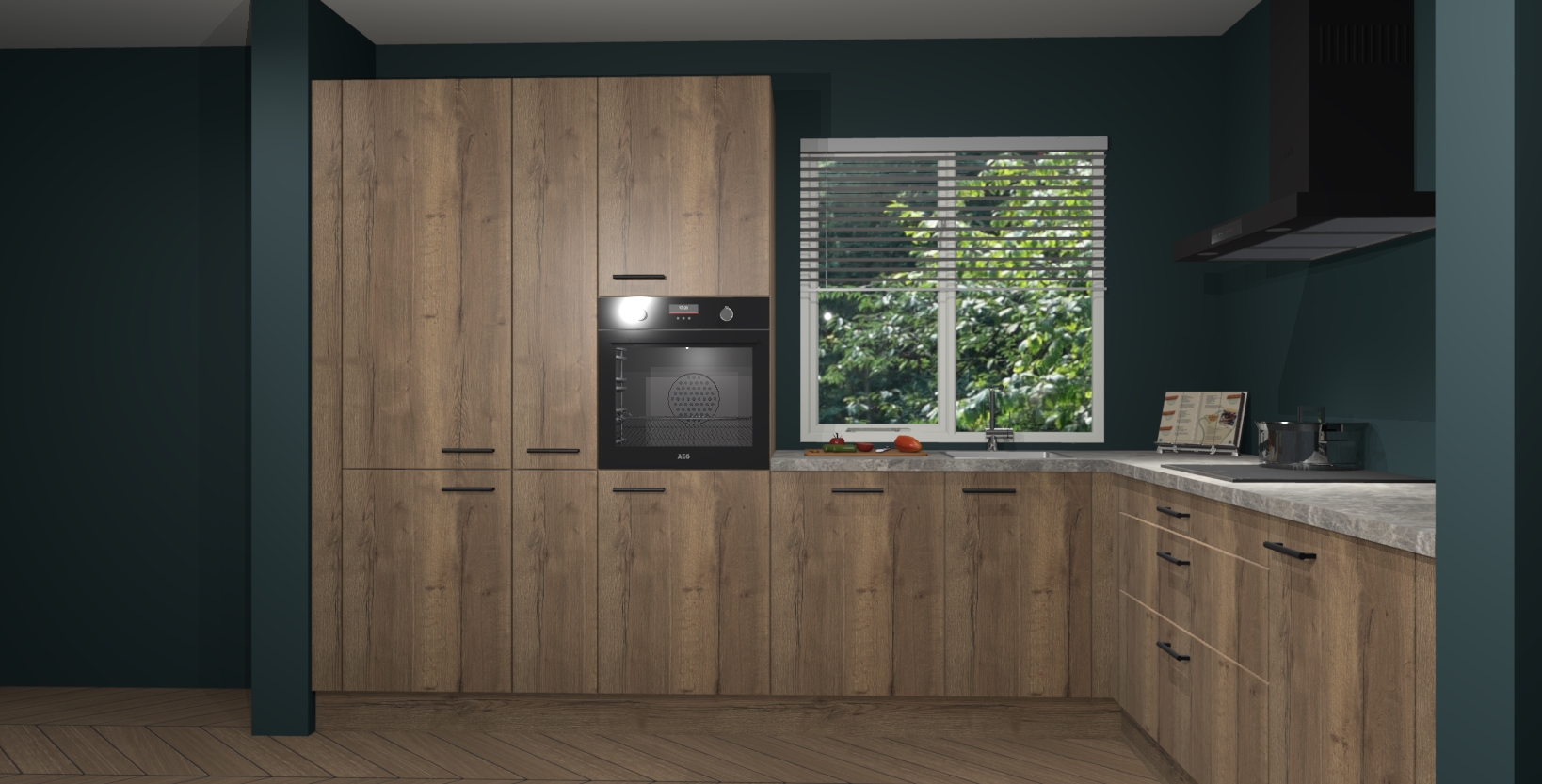Met een modern, tijdloos design en ruime opslagruimte, zult u zich in no-time thuis voelen in uw nieuwe keuken. Uw leven wordt eenvoudiger met de soft-close deuren die voor het ultieme stille comfort zorgen - geen geluid dat u stoort terwijl u kookt. Ook is de keuken voorzien van 5 ingebouwde apparaten: een oven, inductie kookplaat, afzuigkap, vaatwasser en koelkast. Deze kunnen gemakkelijk na bestelling worden bijgewerkt naar AEG - waardoor uw luxe ervaring compleet is.