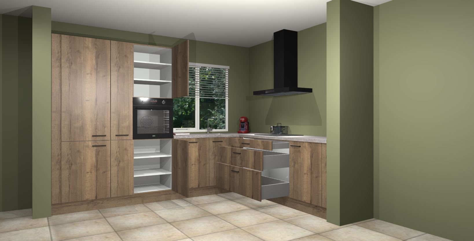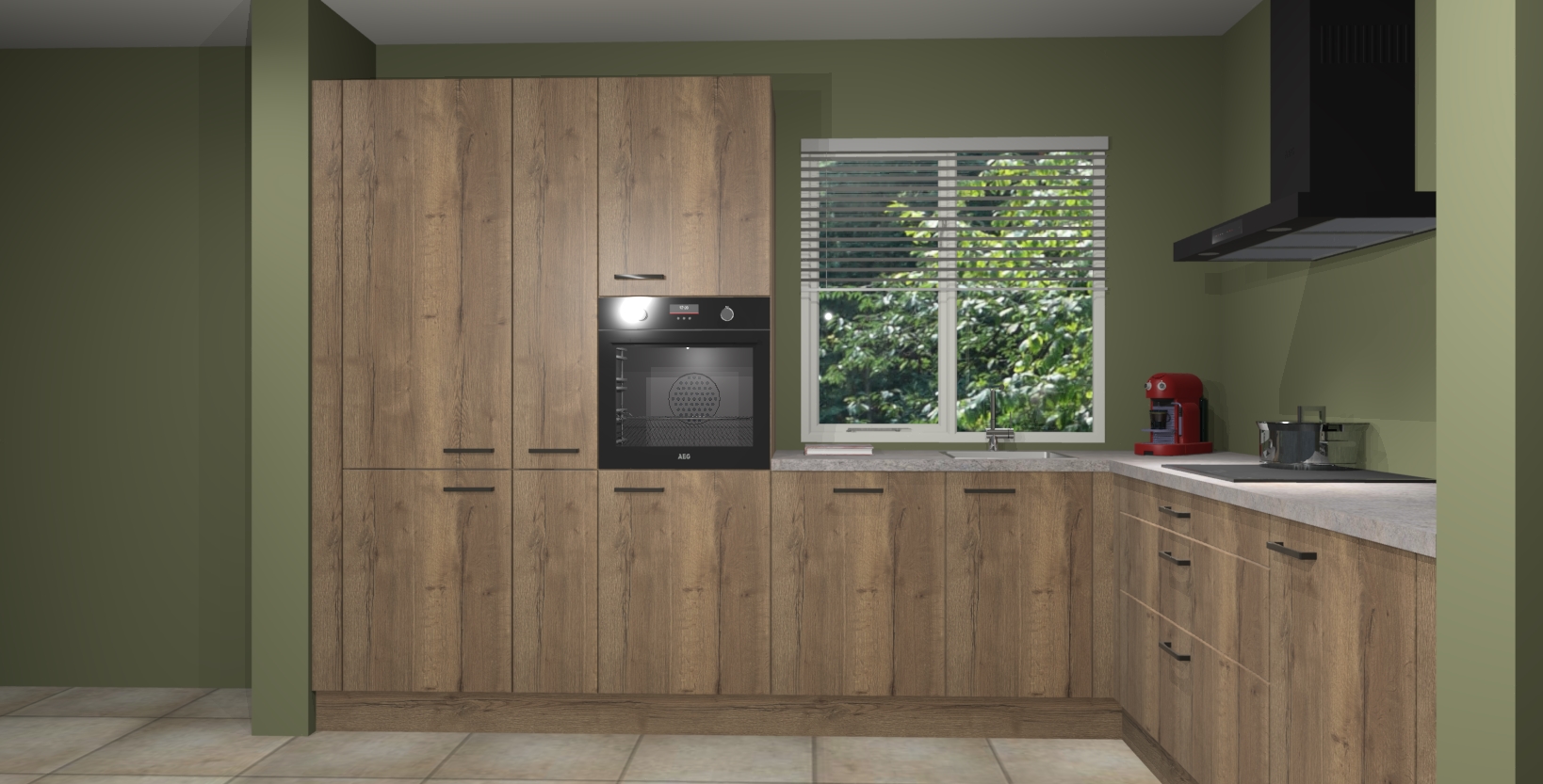 Met een modern, tijdloos design en ruime opslagruimte, zult u zich in no-time thuis voelen in uw nieuwe keuken. Uw leven wordt eenvoudiger met de soft-close deuren die voor het ultieme stille comfort zorgen - geen geluid dat u stoort terwijl u kookt. Ook is de keuken voorzien van 5 ingebouwde apparaten: een oven, inductie kookplaat, afzuigkap, vaatwasser en koelkast. Deze kunnen gemakkelijk na bestelling worden bijgewerkt naar AEG - waardoor uw luxe ervaring compleet is.