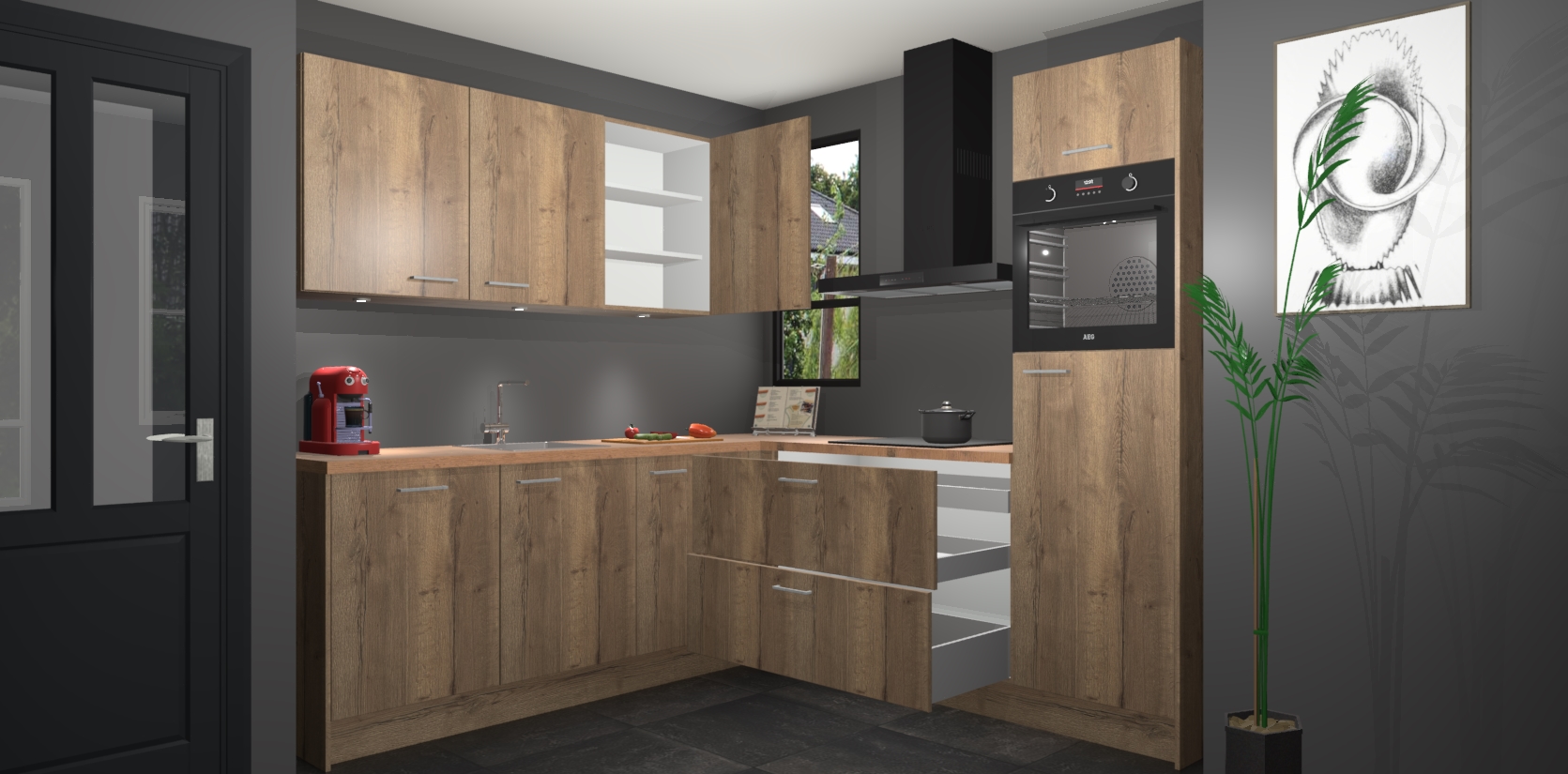 Als extra werd de prijs zo laag mogelijk vastgesteld, zonder aan de kwaliteit te raken. Zo heb je gegarandeerde Duitse keukenkwaliteit waarmee je jarenlang plezier beleeft aan het ontwerp. En dat alles wordt gecombineerd met een supersnelle service van maar liefst 7 weken!