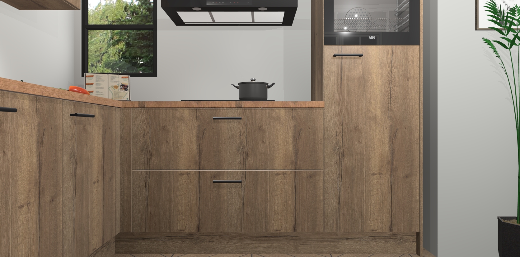 Inclusief plinten, stelpoten en werkblad
