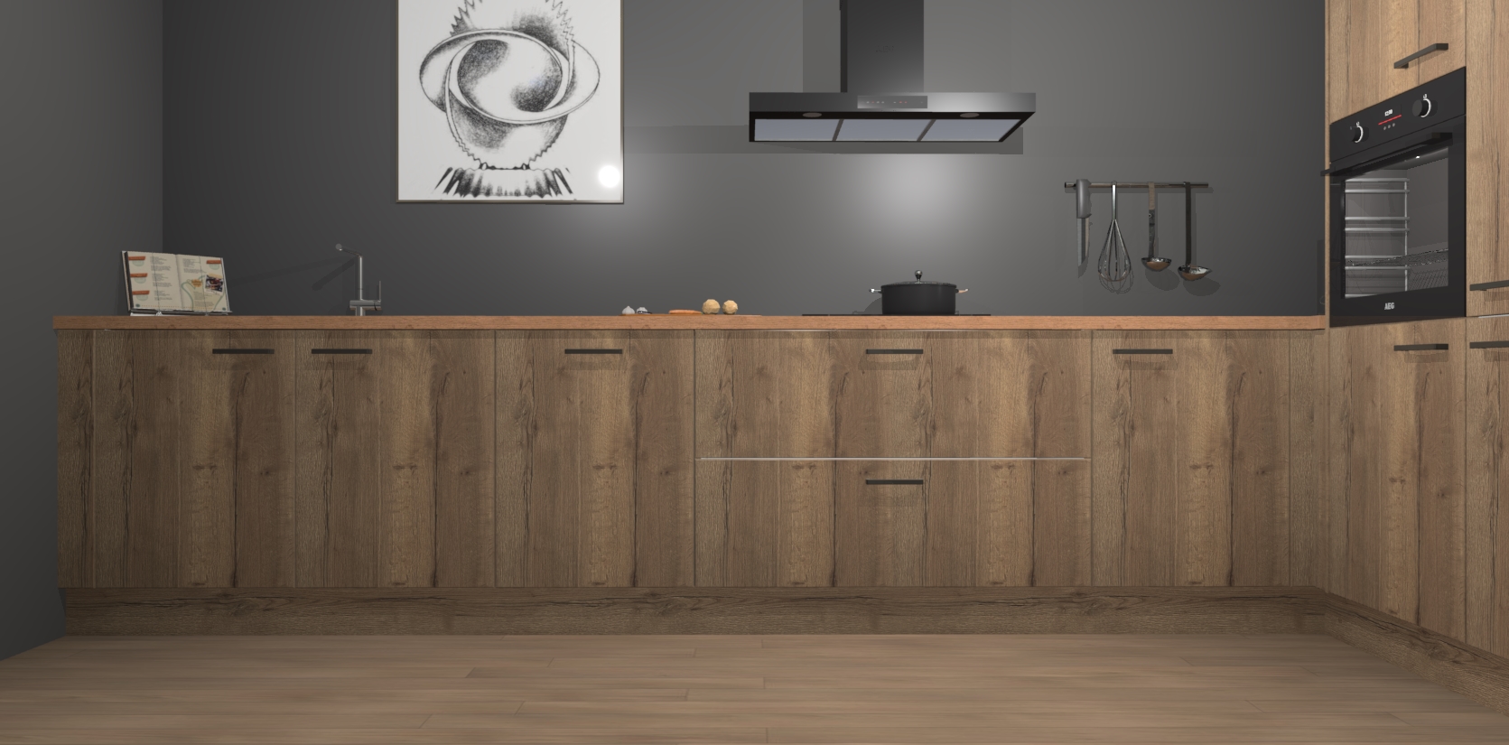 Welkom bij de Chocolade Eiken keuken Khao Lak. Deze prachtige keuken zal de komende jaren het middelpunt van de belangstelling in uw huis zijn. Uitgerust met vijf inbouwapparaten komt u nooit kookgereedschap tekort. Bovendien geeft de warme houtlook elke ruimte een uitnodigende en tijdloze uitstraling.