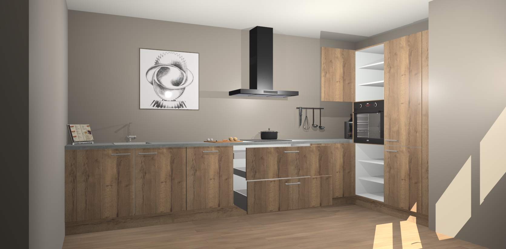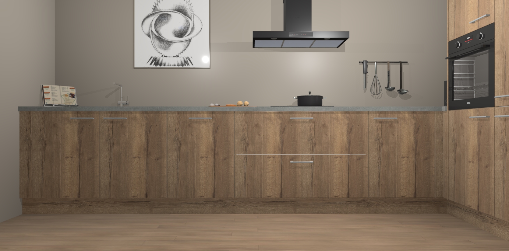 Welkom bij de Chocolade Eiken keuken Khao Lak. Deze prachtige keuken zal de komende jaren het middelpunt van de belangstelling in uw huis zijn. Uitgerust met vijf inbouwapparaten komt u nooit kookgereedschap tekort. Bovendien geeft de warme houtlook elke ruimte een uitnodigende en tijdloze uitstraling.