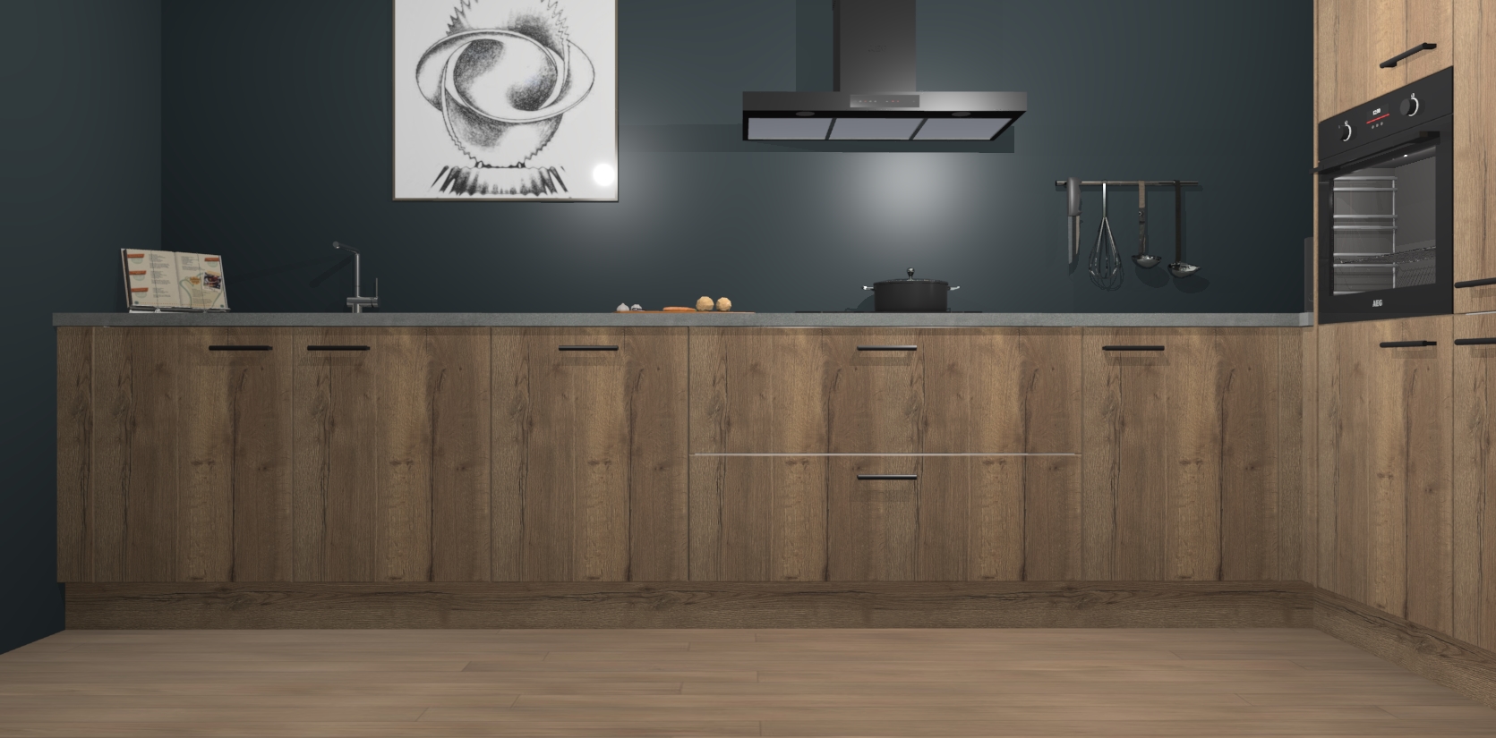 Welkom bij de Chocolade Eiken keuken Khao Lak. Deze prachtige keuken zal de komende jaren het middelpunt van de belangstelling in uw huis zijn. Uitgerust met vijf inbouwapparaten komt u nooit kookgereedschap tekort. Bovendien geeft de warme houtlook elke ruimte een uitnodigende en tijdloze uitstraling.