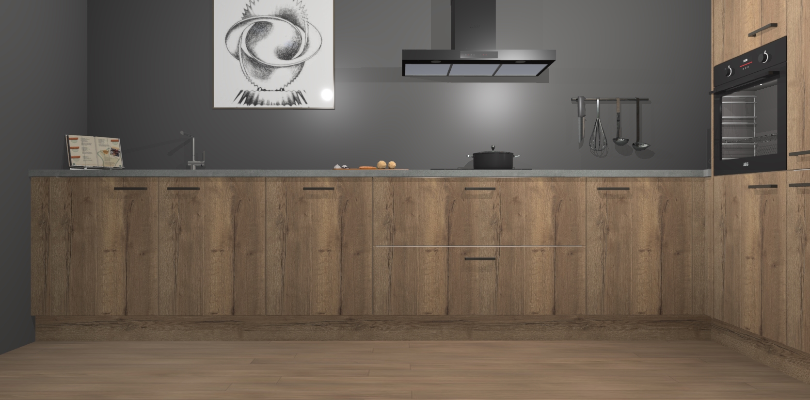 Welkom bij de Chocolade Eiken keuken Khao Lak. Deze prachtige keuken zal de komende jaren het middelpunt van de belangstelling in uw huis zijn. Uitgerust met vijf inbouwapparaten komt u nooit kookgereedschap tekort. Bovendien geeft de warme houtlook elke ruimte een uitnodigende en tijdloze uitstraling.