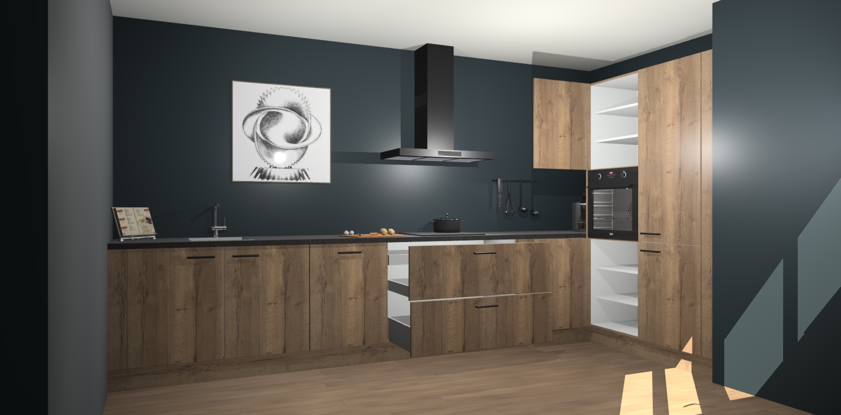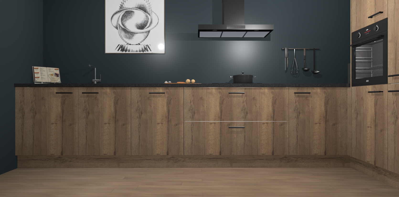 Welkom bij de Chocolade Eiken keuken Khao Lak. Deze prachtige keuken zal de komende jaren het middelpunt van de belangstelling in uw huis zijn. Uitgerust met vijf inbouwapparaten komt u nooit kookgereedschap tekort. Bovendien geeft de warme houtlook elke ruimte een uitnodigende en tijdloze uitstraling.