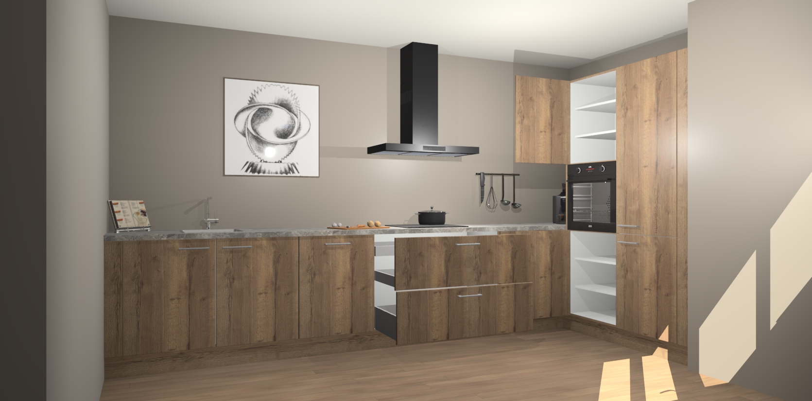 Welkom bij de Chocolade Eiken keuken Khao Lak. Deze prachtige keuken zal de komende jaren het middelpunt van de belangstelling in uw huis zijn. Uitgerust met vijf inbouwapparaten komt u nooit kookgereedschap tekort. Bovendien geeft de warme houtlook elke ruimte een uitnodigende en tijdloze uitstraling.