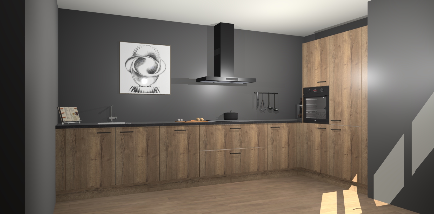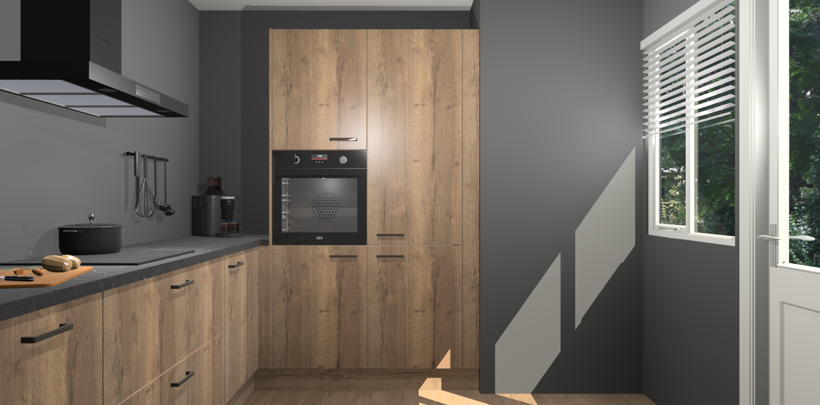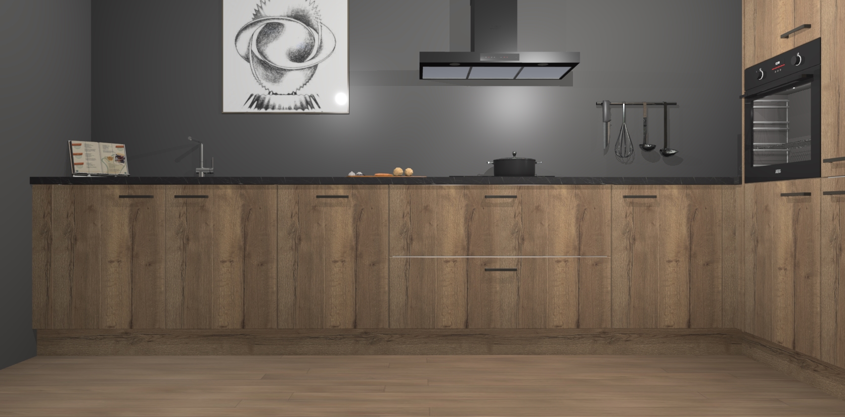 Welkom bij de Chocolade Eiken keuken Khao Lak. Deze prachtige keuken zal de komende jaren het middelpunt van de belangstelling in uw huis zijn. Uitgerust met vijf inbouwapparaten komt u nooit kookgereedschap tekort. Bovendien geeft de warme houtlook elke ruimte een uitnodigende en tijdloze uitstraling.