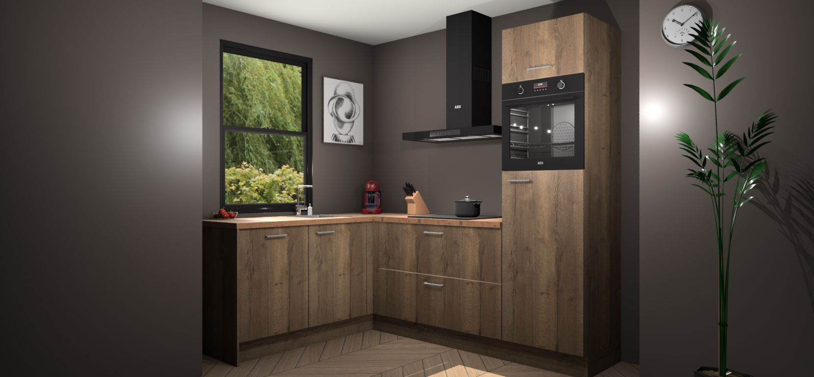 Deze prachtige hoekkeuken heeft alle benodigdheden om uw droomkook- en eetruimte compleet te maken. De Chocolade Eiken kasten bieden een echo van raffinement, terwijl de 5 inbouwapparaten genoeg opties bieden voor het bereiden van heerlijke maaltijden. De oven, inductiekookplaat, afzuigkap, vaatwasser en koelkast zorgen ervoor dat u tijd in de keuken zo efficiënt mogelijk verloopt, terwijl ze ook dat extra vleugje luxe bieden.