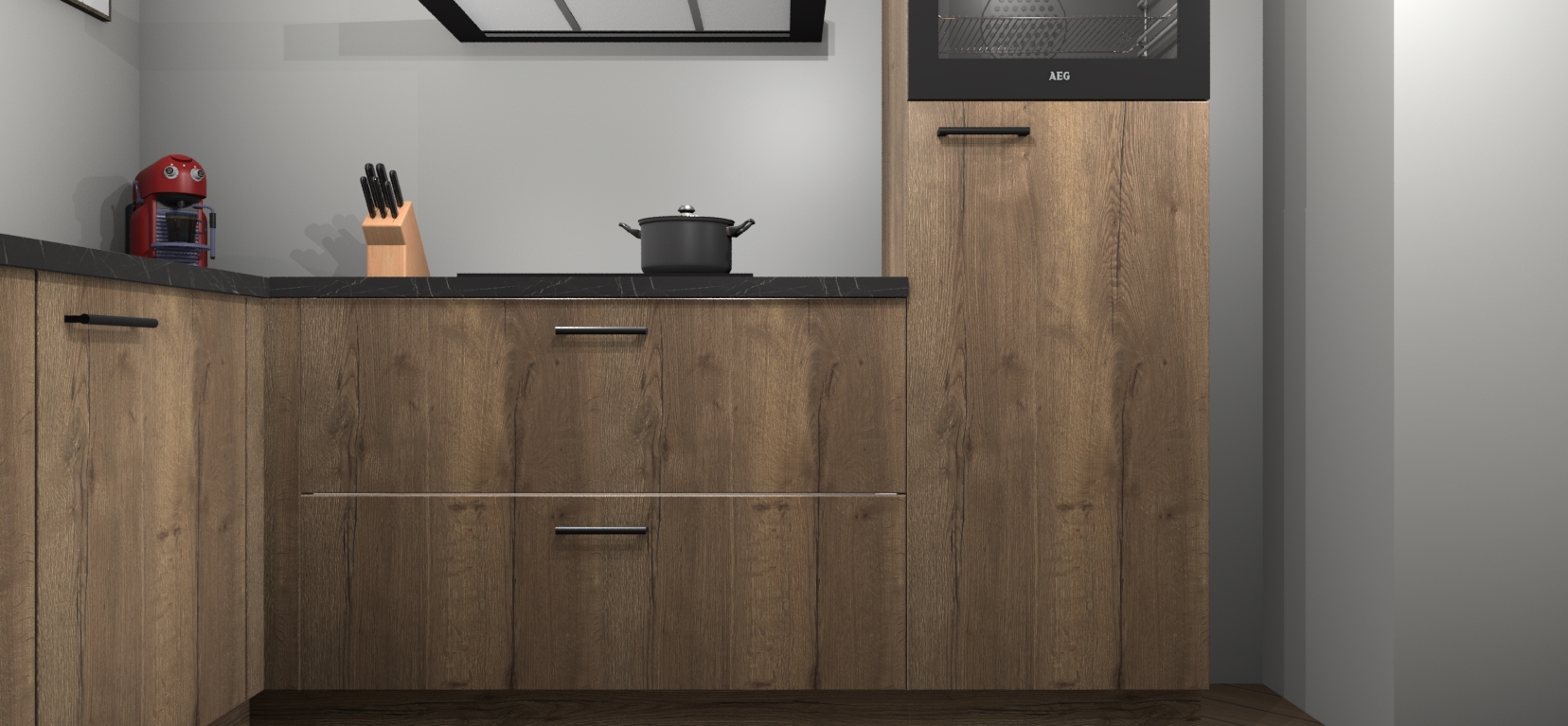 Inclusief plinten, stelpoten en werkblad