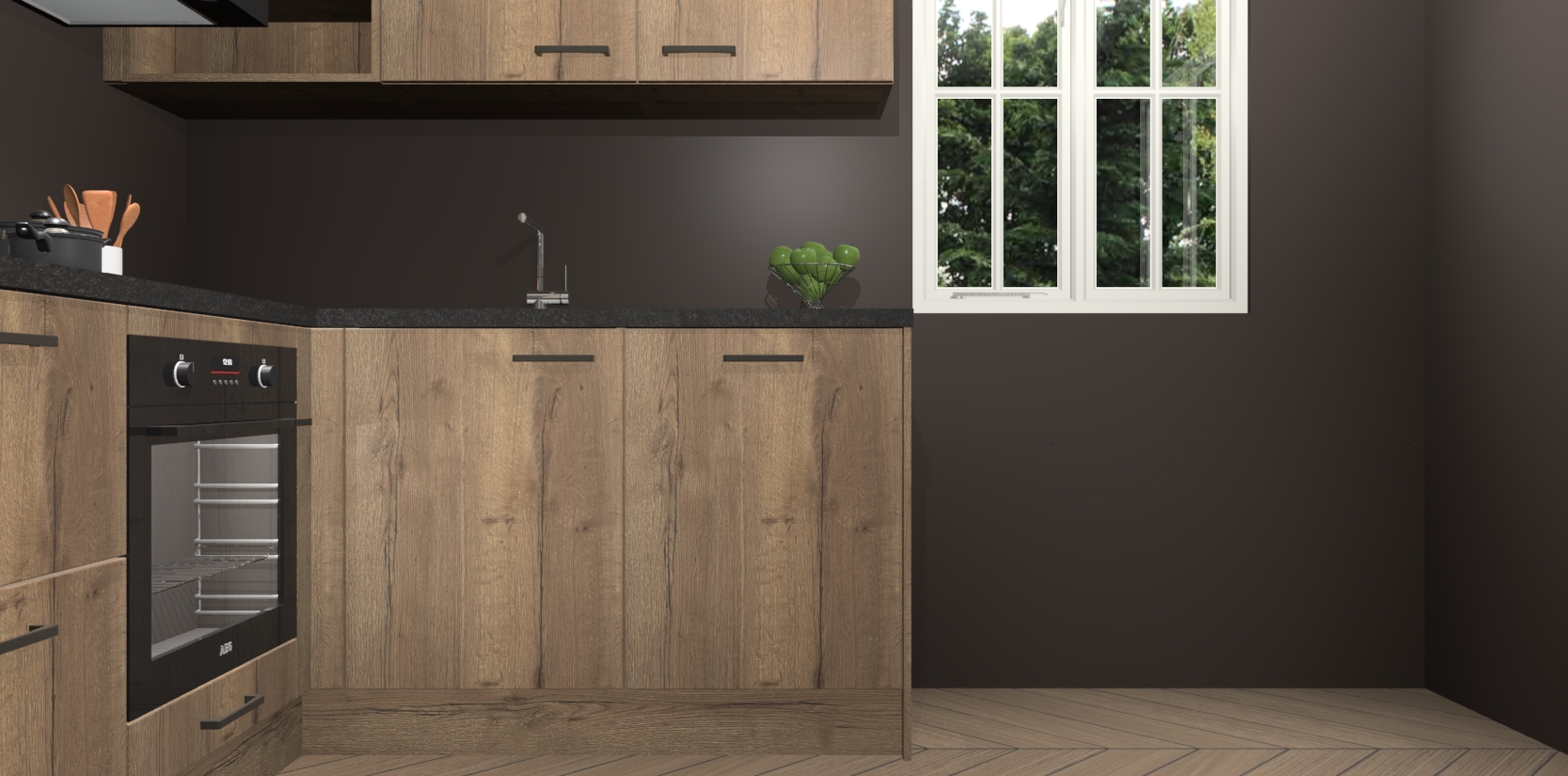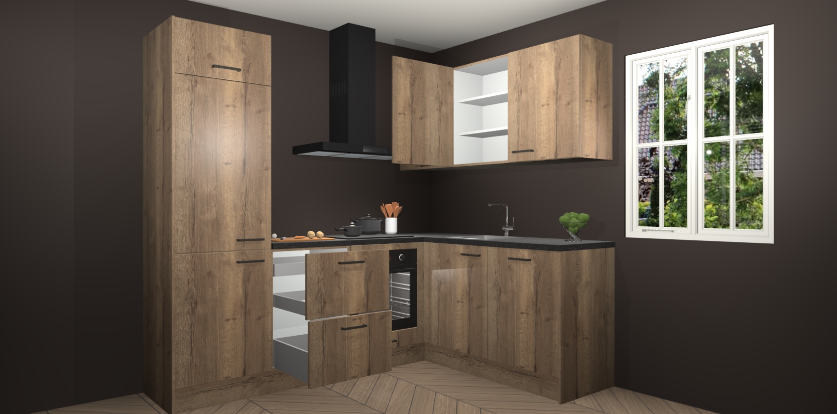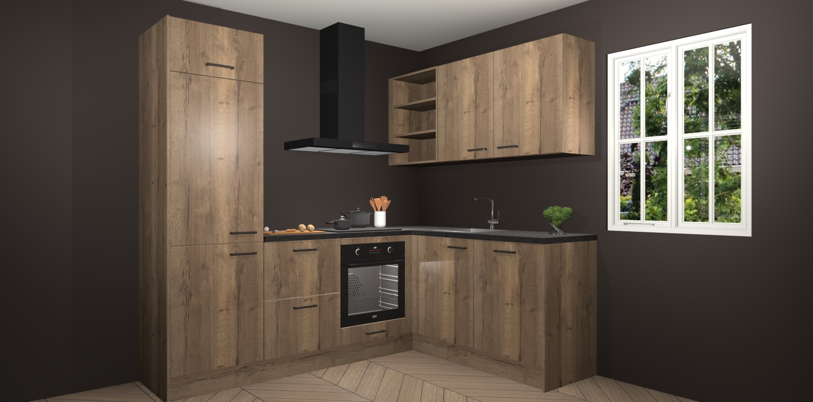 Bestellen was nog nooit zo makkelijk en we leveren met slechts 7 weken; zodra de keuken arriveert staan de kasten voor gemonteerd klaar om er alles aan te doen dat u hem gemakkelijk zelf kunt installeren! Eén ding is zeker: met de Chocolade Eiken keuken Krakau slaagt u erin modischer, modernere keukens uit te rusten die tientallen jaren meegaan! Haal snel uw Chocolade Eiken keuken Krakau - of u nu net begint of al 'levenservaring' hebt in de keukendroomloopbaan - want dit topmodel van onze collectie wilt u absoluut niet missen.