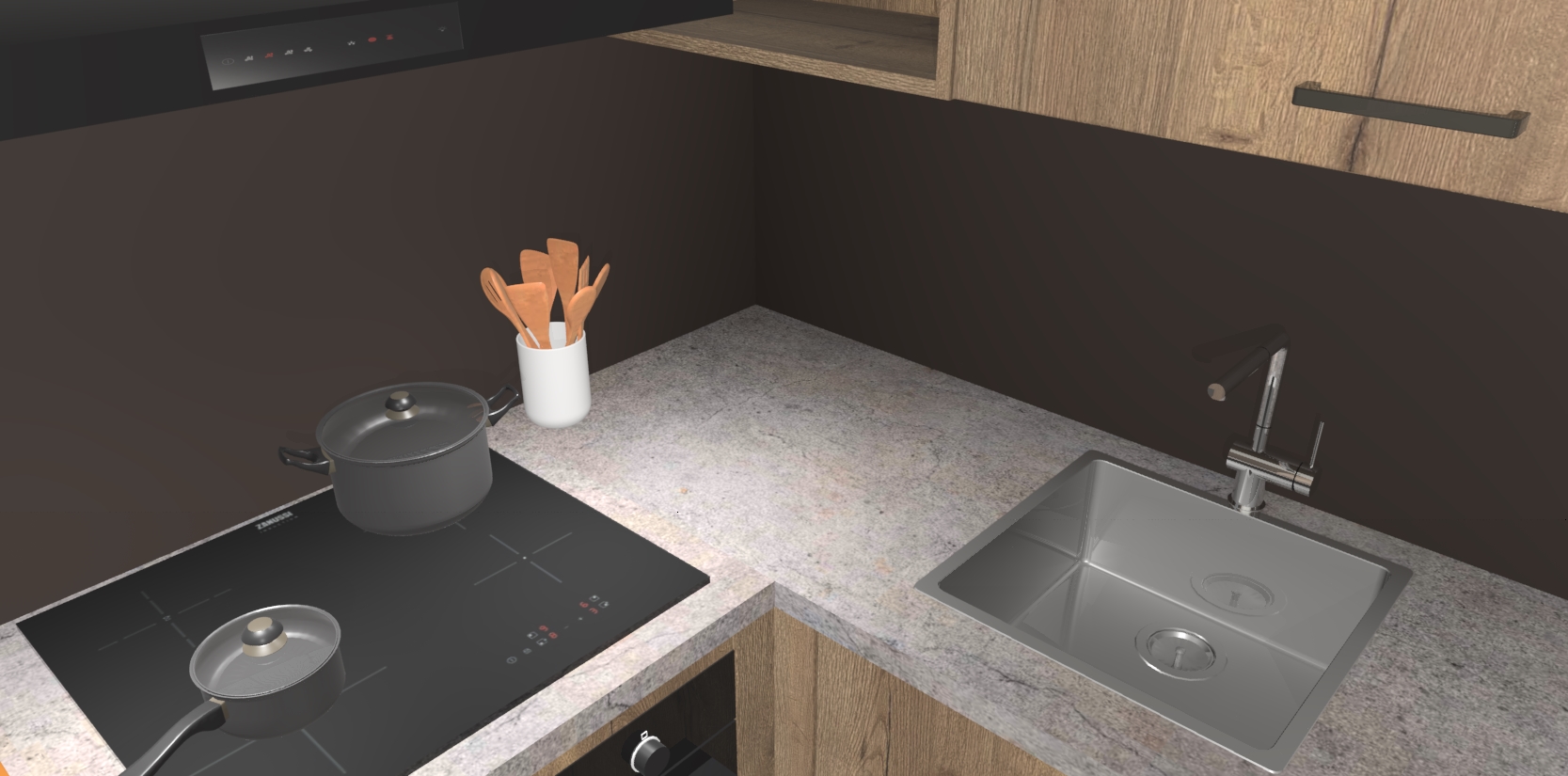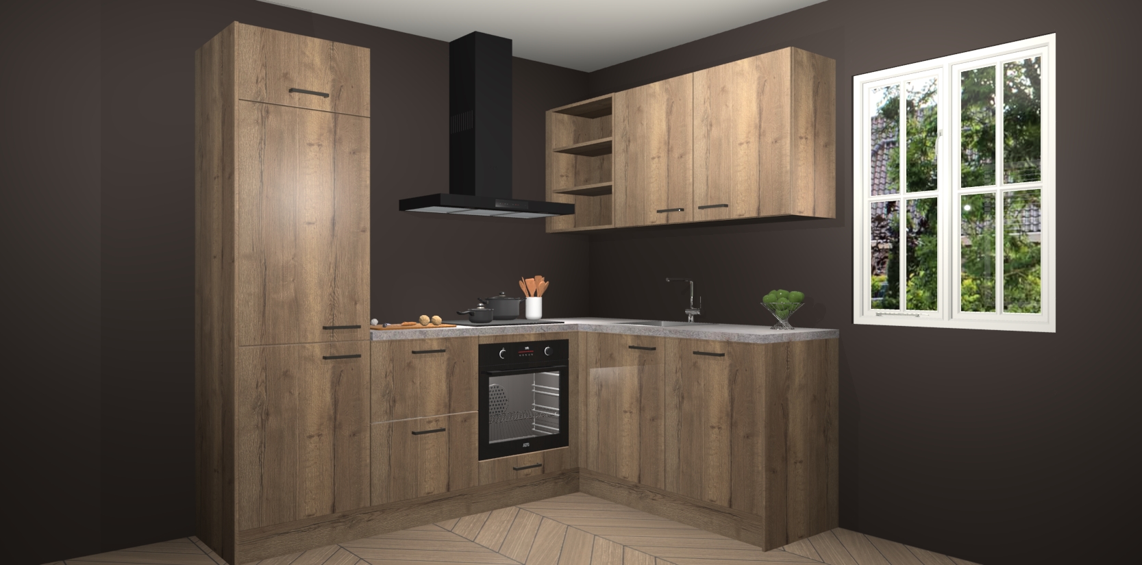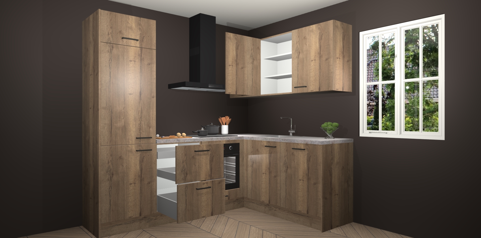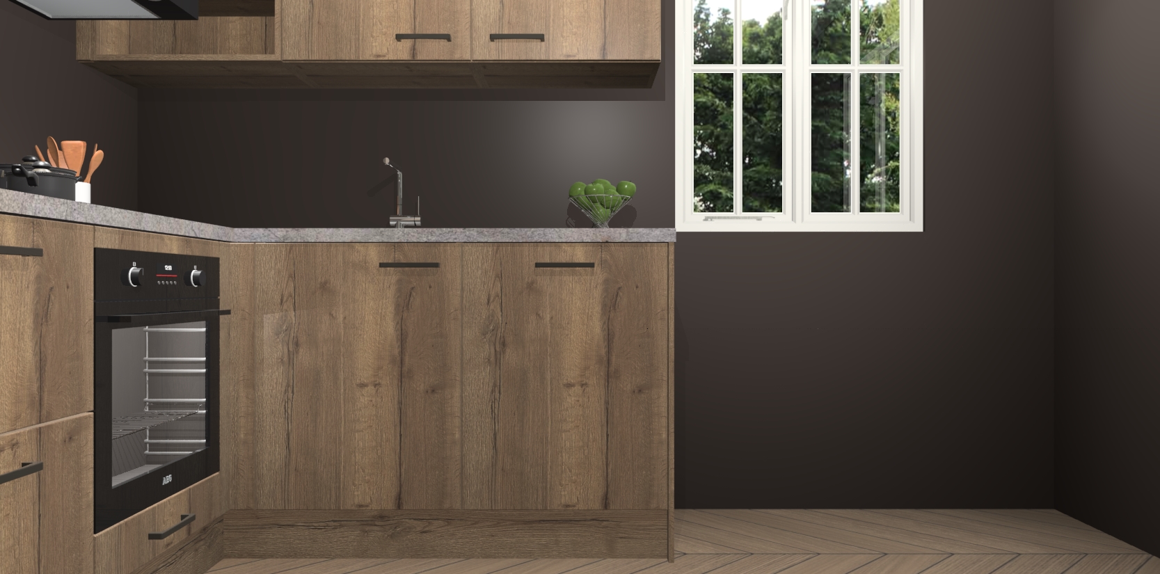 Bestellen was nog nooit zo makkelijk en we leveren met slechts 7 weken; zodra de keuken arriveert staan de kasten voor gemonteerd klaar om er alles aan te doen dat u hem gemakkelijk zelf kunt installeren! Eén ding is zeker: met de Chocolade Eiken keuken Krakau slaagt u erin modischer, modernere keukens uit te rusten die tientallen jaren meegaan! Haal snel uw Chocolade Eiken keuken Krakau - of u nu net begint of al 'levenservaring' hebt in de keukendroomloopbaan - want dit topmodel van onze collectie wilt u absoluut niet missen.