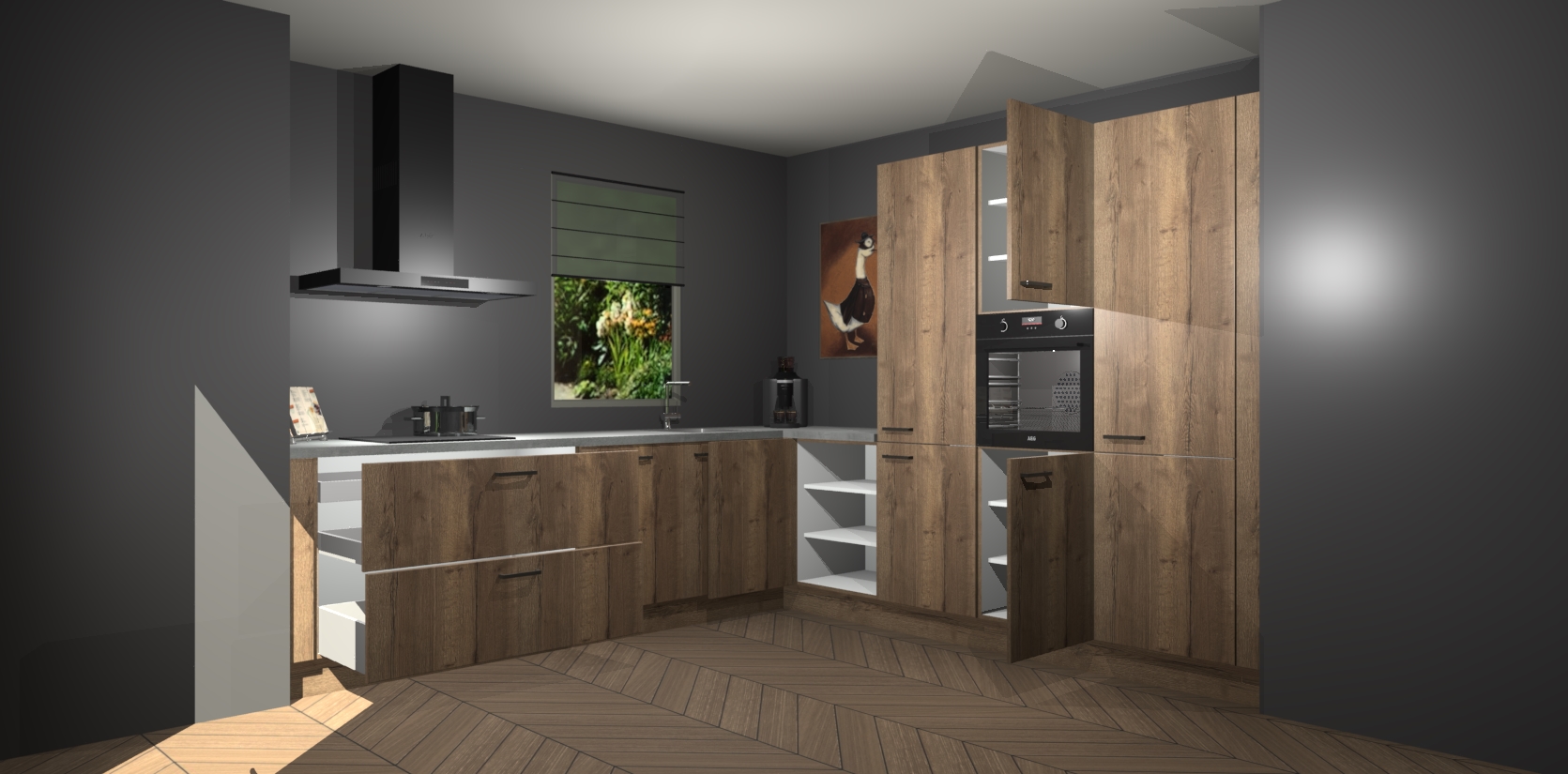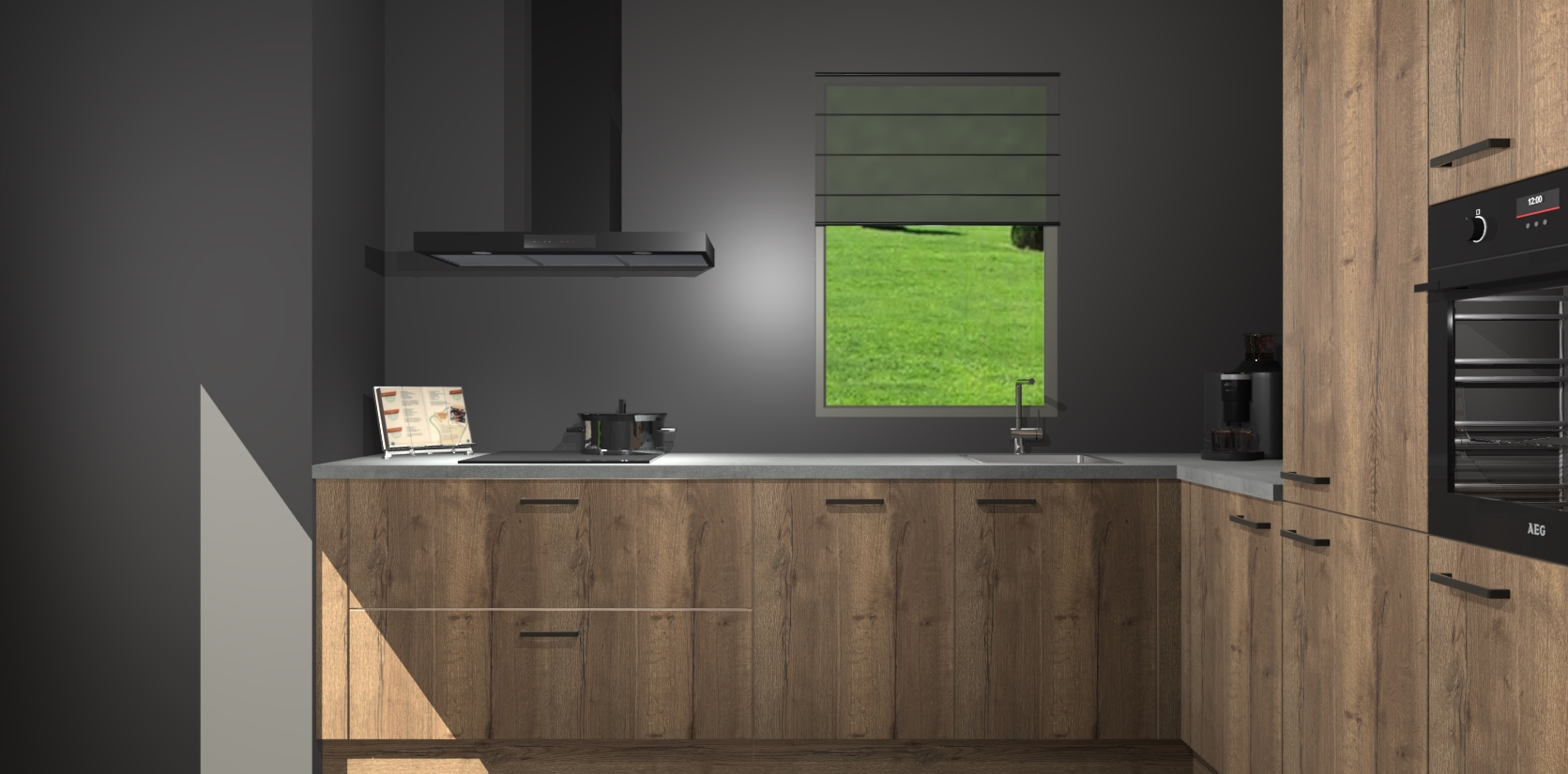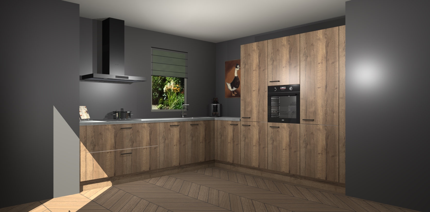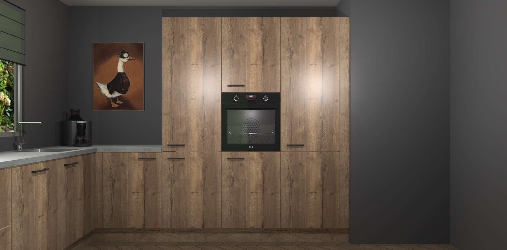 Welkom bij de Chocolade Eiken keuken Laos. Deze prachtige keuken zal de komende jaren het middelpunt van de belangstelling in uw huis zijn. Uitgerust met vijf inbouwapparaten komt u nooit kookgereedschap tekort. Bovendien geeft de warme houtlook elke ruimte een uitnodigende en tijdloze uitstraling.