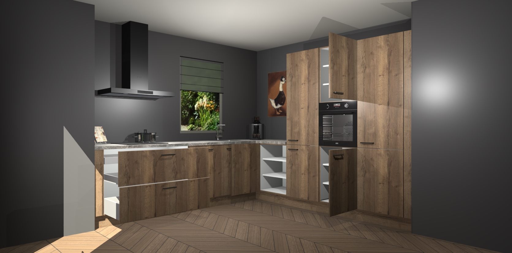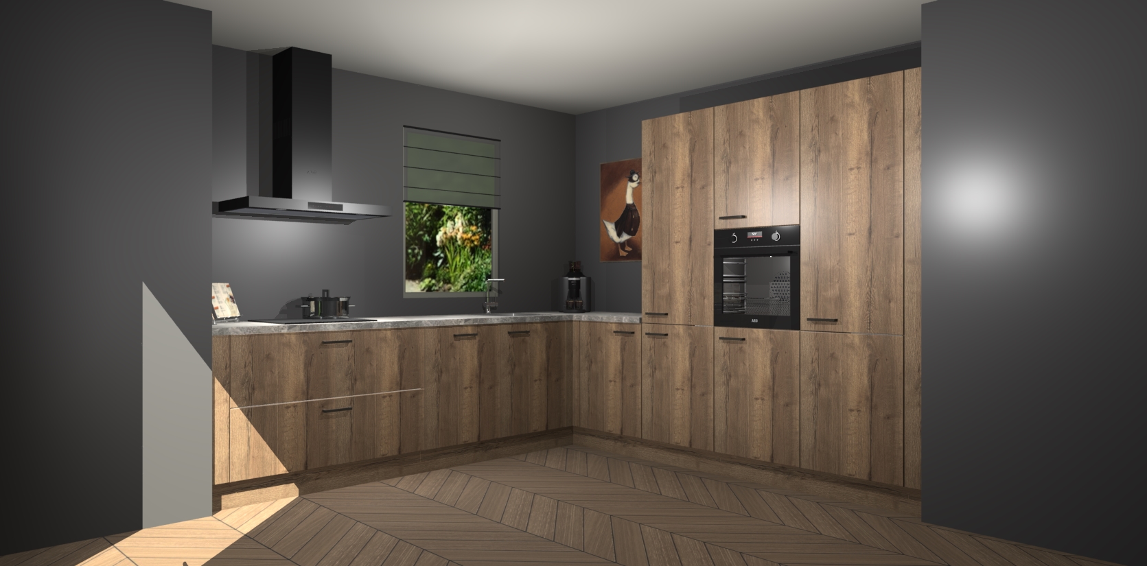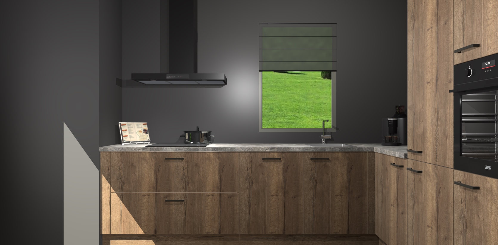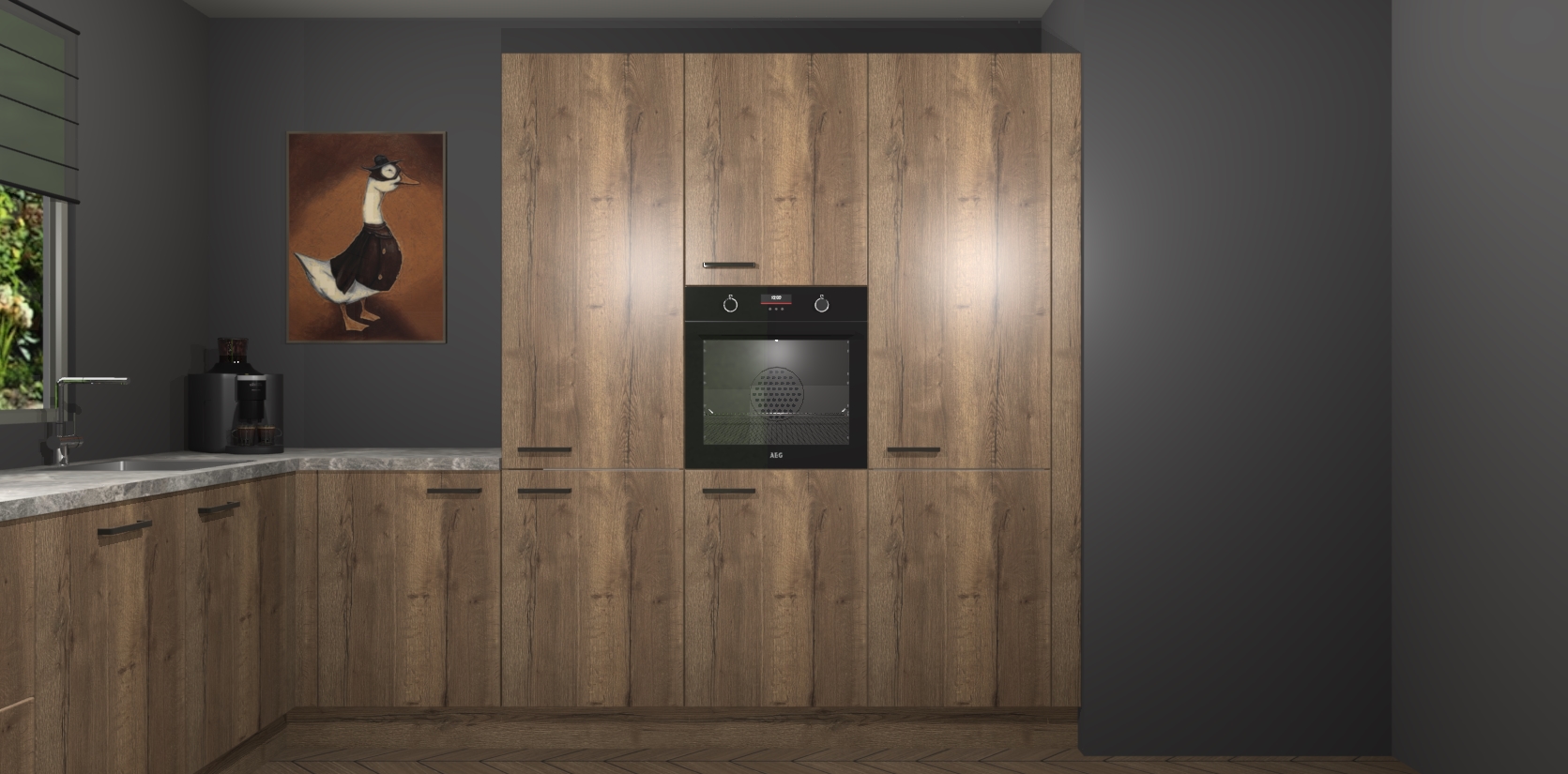 Welkom bij de Chocolade Eiken keuken Laos. Deze prachtige keuken zal de komende jaren het middelpunt van de belangstelling in uw huis zijn. Uitgerust met vijf inbouwapparaten komt u nooit kookgereedschap tekort. Bovendien geeft de warme houtlook elke ruimte een uitnodigende en tijdloze uitstraling.