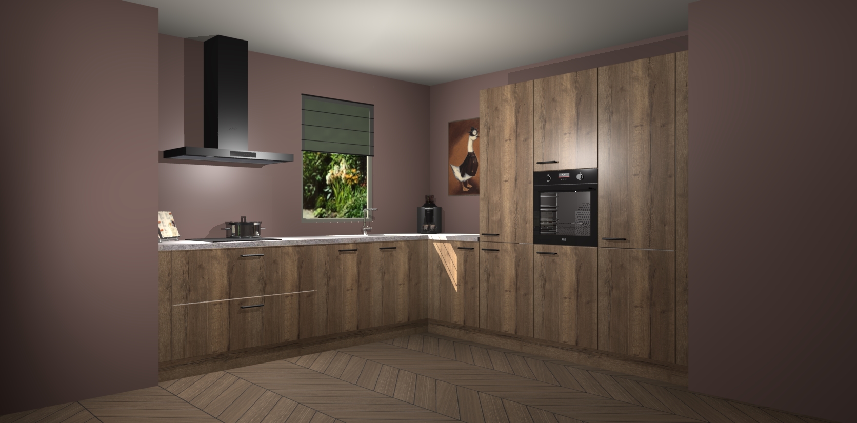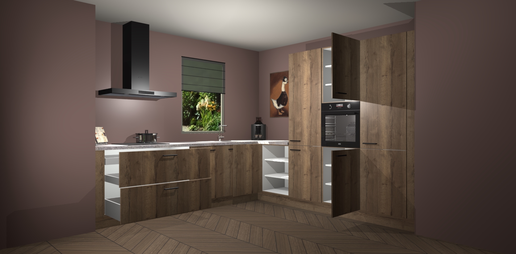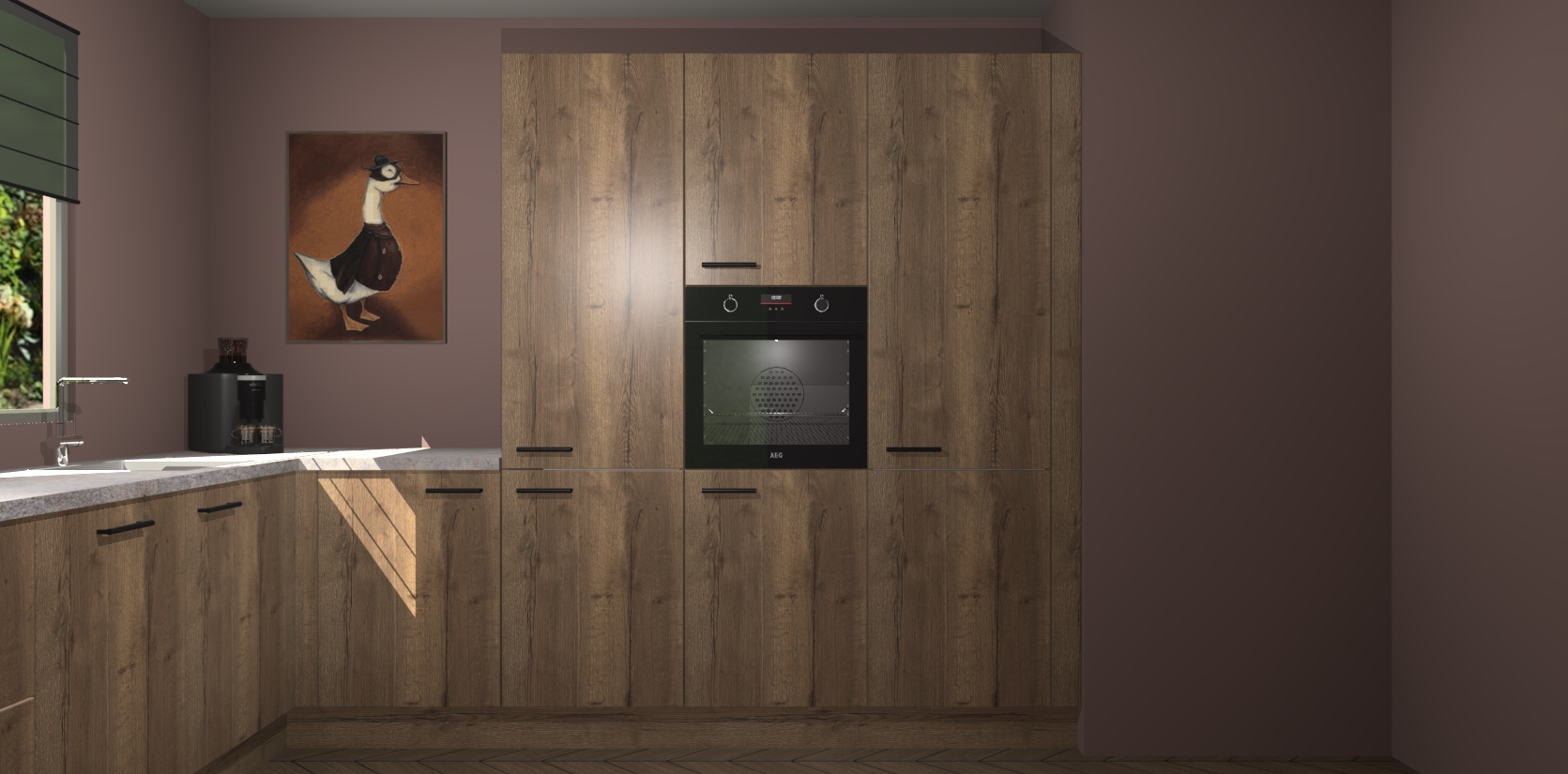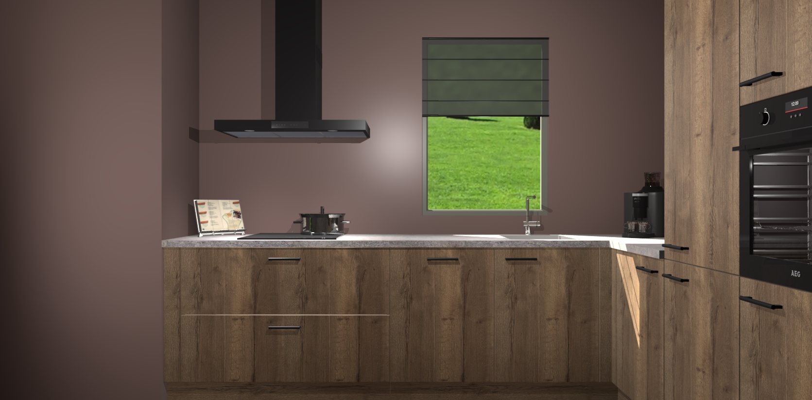 Welkom bij de Chocolade Eiken keuken Laos. Deze prachtige keuken zal de komende jaren het middelpunt van de belangstelling in uw huis zijn. Uitgerust met vijf inbouwapparaten komt u nooit kookgereedschap tekort. Bovendien geeft de warme houtlook elke ruimte een uitnodigende en tijdloze uitstraling.