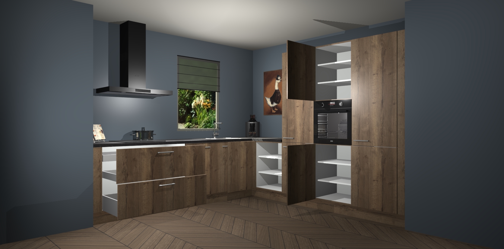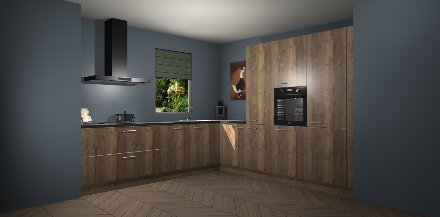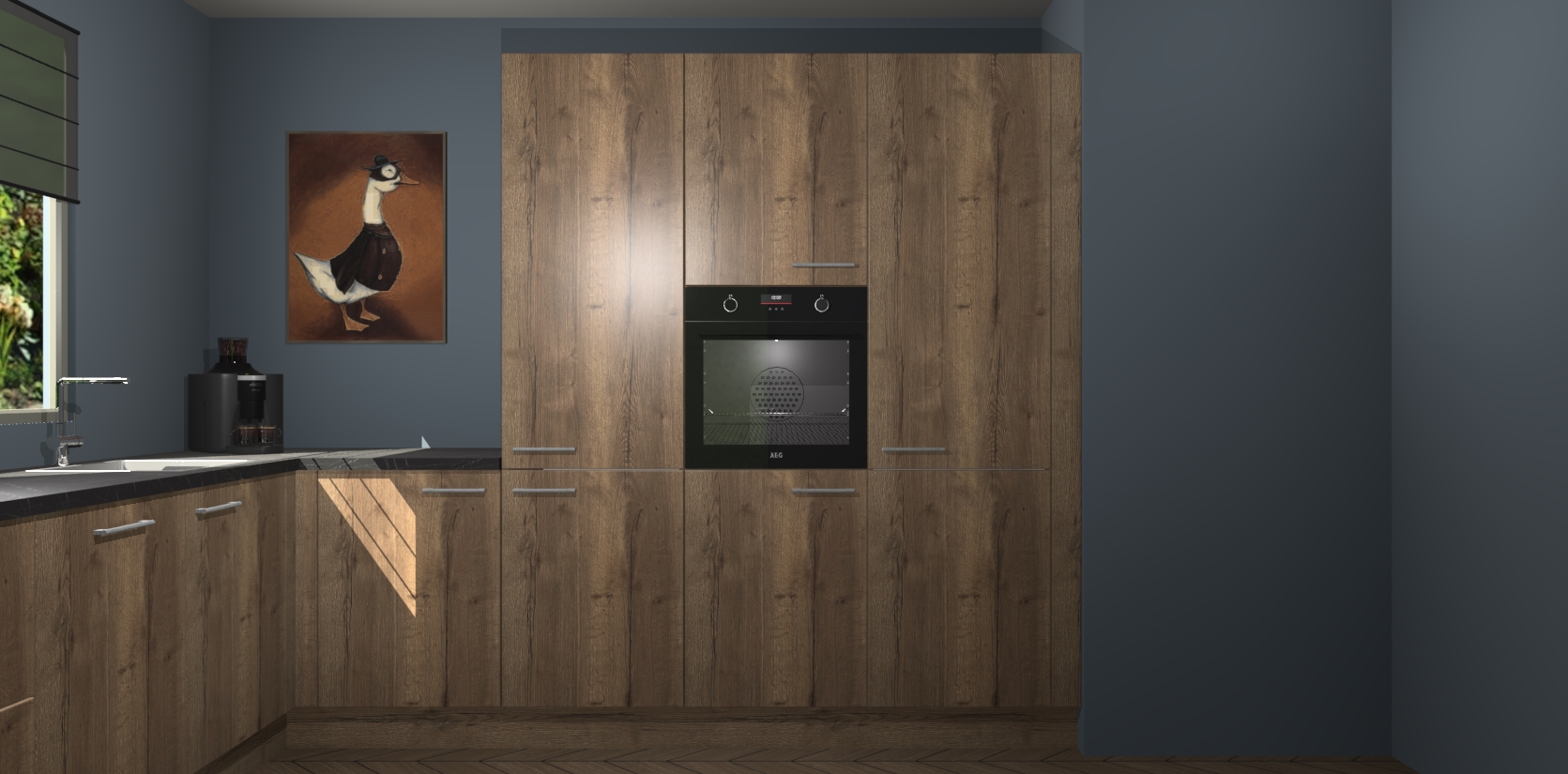 Welkom bij de Chocolade Eiken keuken Laos. Deze prachtige keuken zal de komende jaren het middelpunt van de belangstelling in uw huis zijn. Uitgerust met vijf inbouwapparaten komt u nooit kookgereedschap tekort. Bovendien geeft de warme houtlook elke ruimte een uitnodigende en tijdloze uitstraling.
