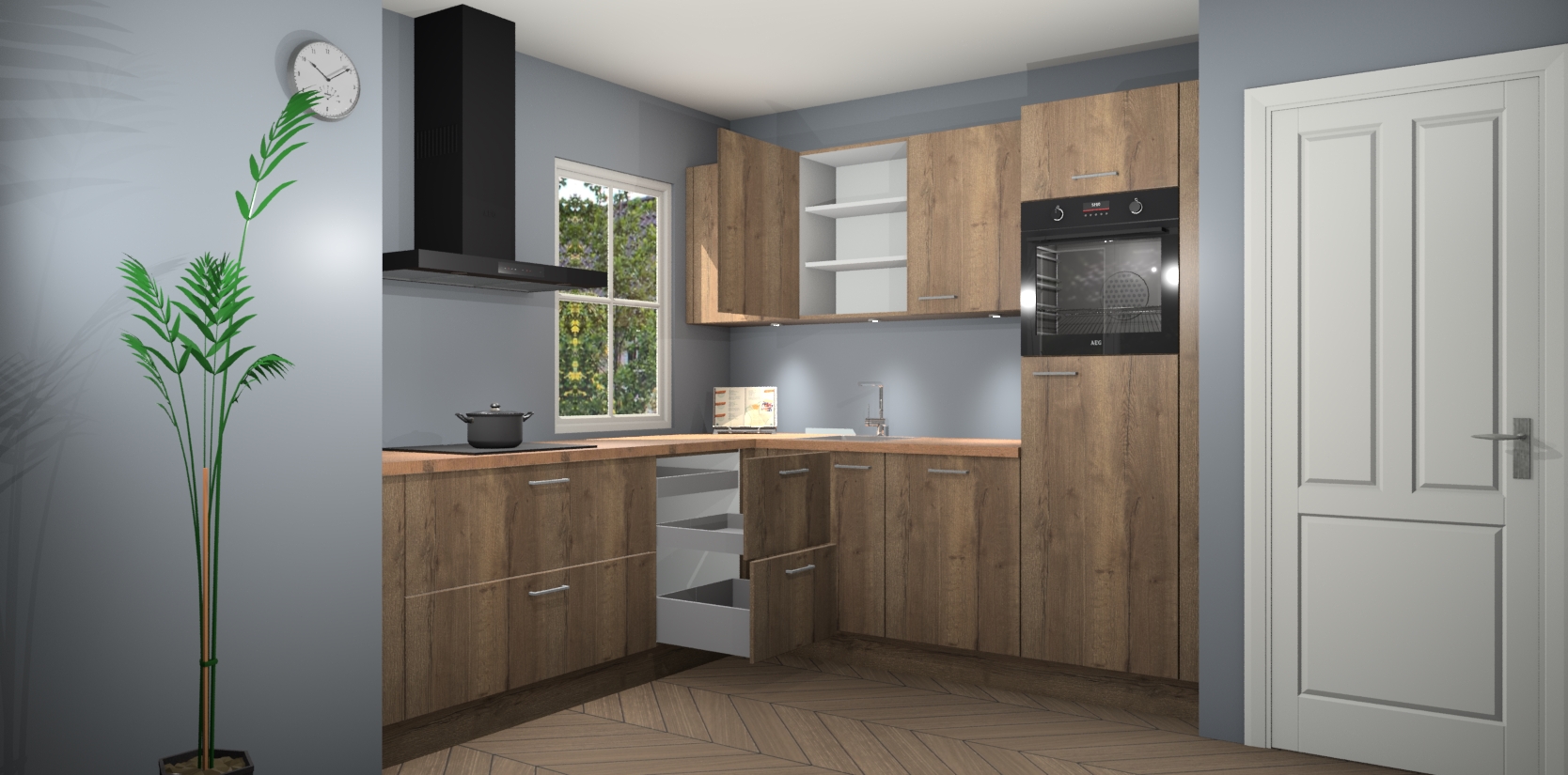 - Bij een hoekwerkblad zijn de hoeken in gevreesd en op maat gemaakt
