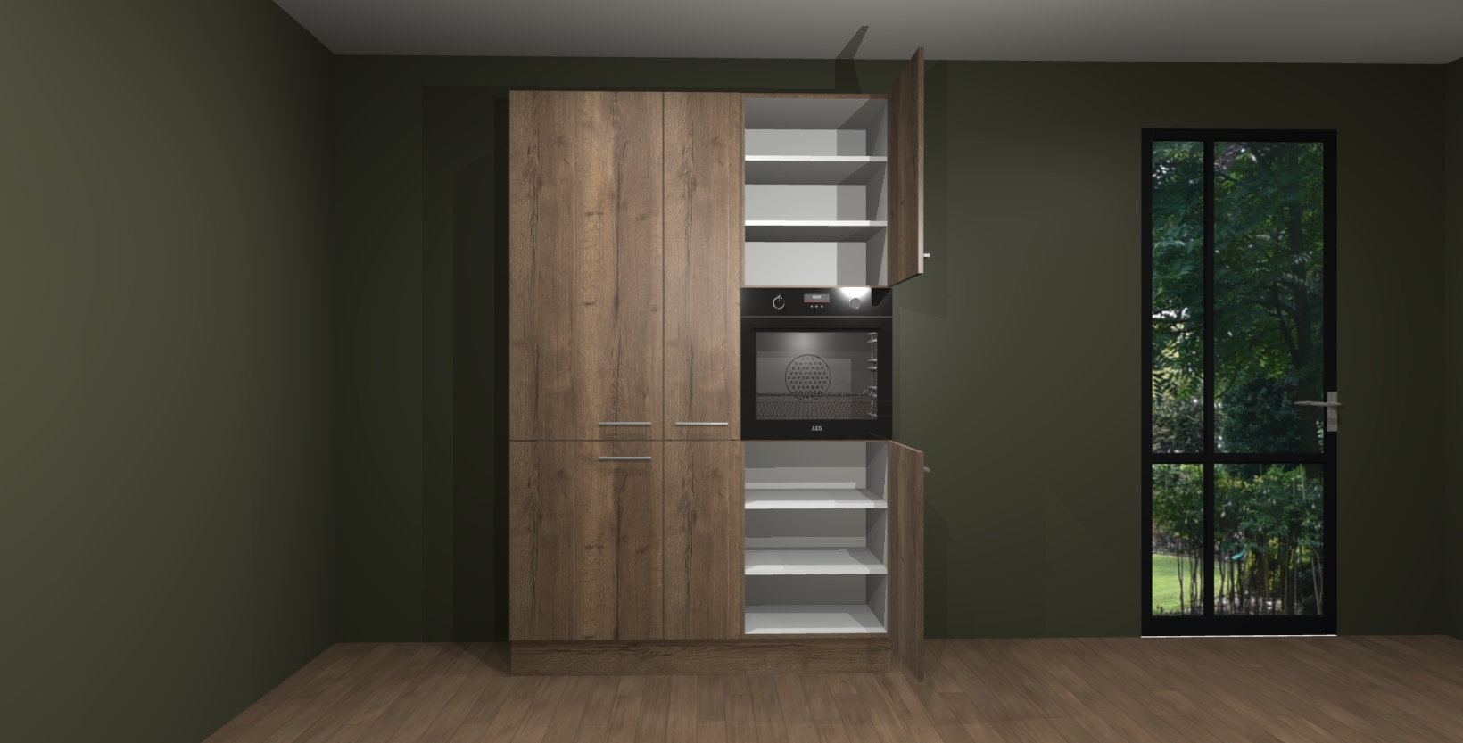 Met een modern, tijdloos design en ruime opslagruimte, zult u zich in no-time thuis voelen in uw nieuwe keuken. Uw leven wordt eenvoudiger met de soft-close deuren die voor het ultieme stille comfort zorgen - geen geluid dat u stoort terwijl u kookt. Ook is de keuken voorzien van 5 ingebouwde apparaten: een oven, inductie kookplaat, afzuigkap, vaatwasser en koelkast. Deze kunnen gemakkelijk na bestelling worden bijgewerkt naar AEG - waardoor uw luxe ervaring compleet is.