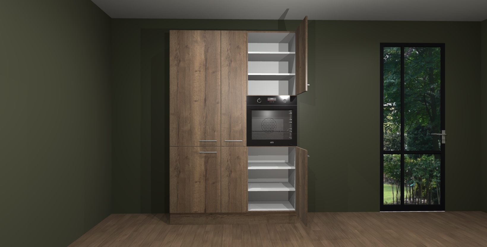 Met een modern, tijdloos design en ruime opslagruimte, zult u zich in no-time thuis voelen in uw nieuwe keuken. Uw leven wordt eenvoudiger met de soft-close deuren die voor het ultieme stille comfort zorgen - geen geluid dat u stoort terwijl u kookt. Ook is de keuken voorzien van 5 ingebouwde apparaten: een oven, inductie kookplaat, afzuigkap, vaatwasser en koelkast. Deze kunnen gemakkelijk na bestelling worden bijgewerkt naar AEG - waardoor uw luxe ervaring compleet is.