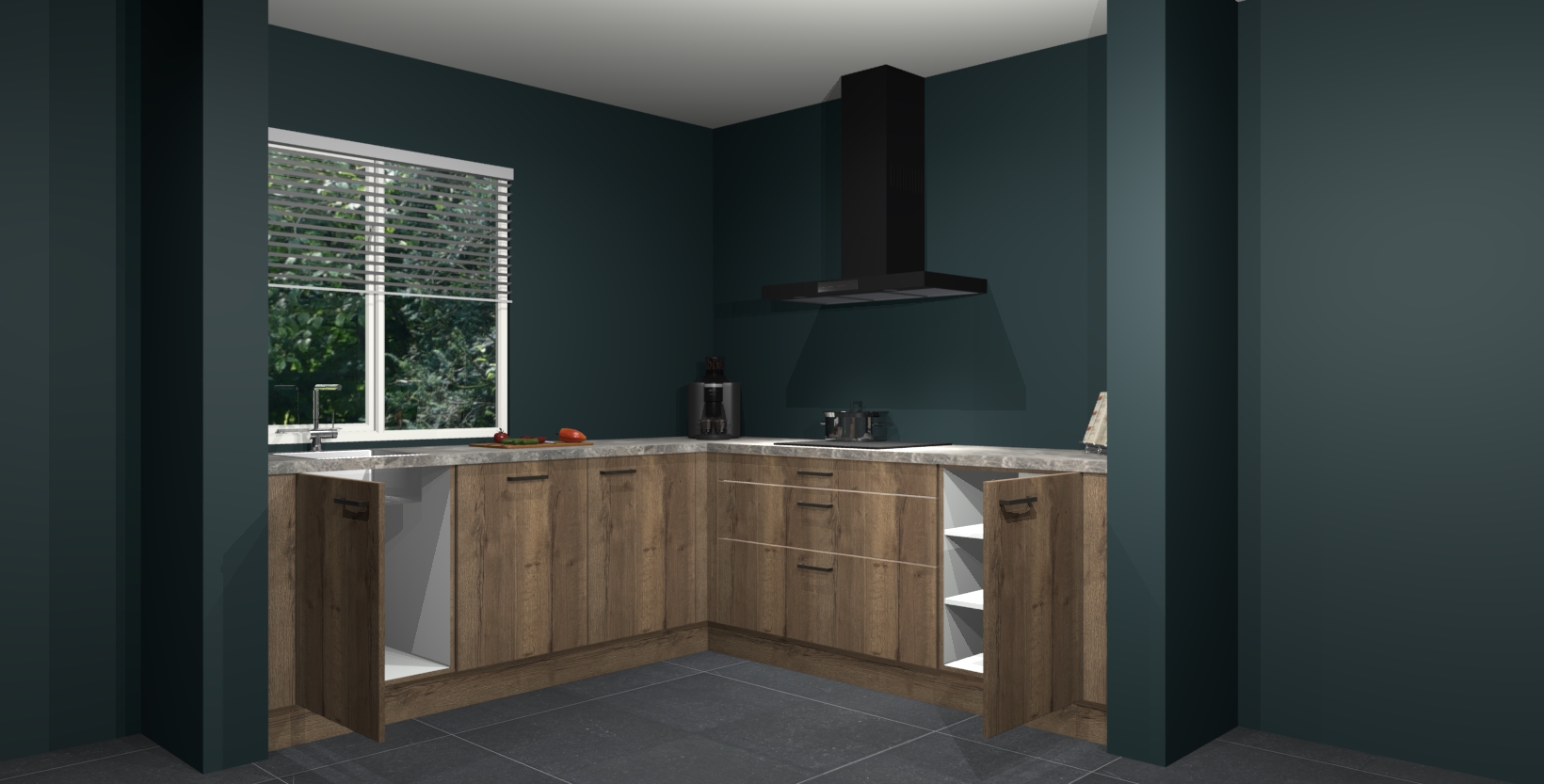 In deze box zijn alle kleuren verzameld van de deuren en werkbladen. Vraag de gratis kleurenbox aan en kijk thuis rustig verder!