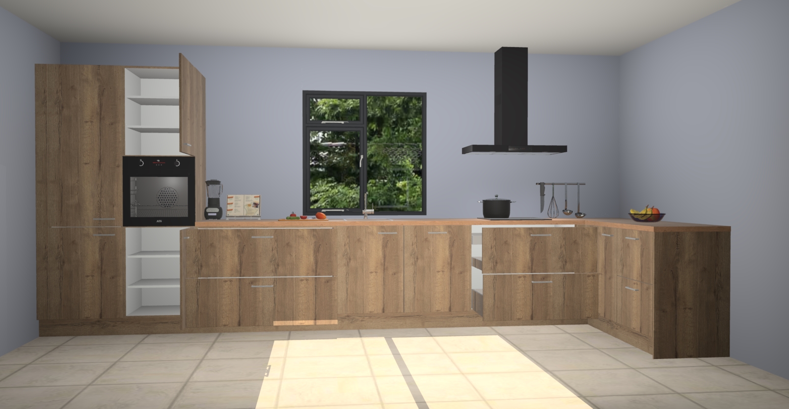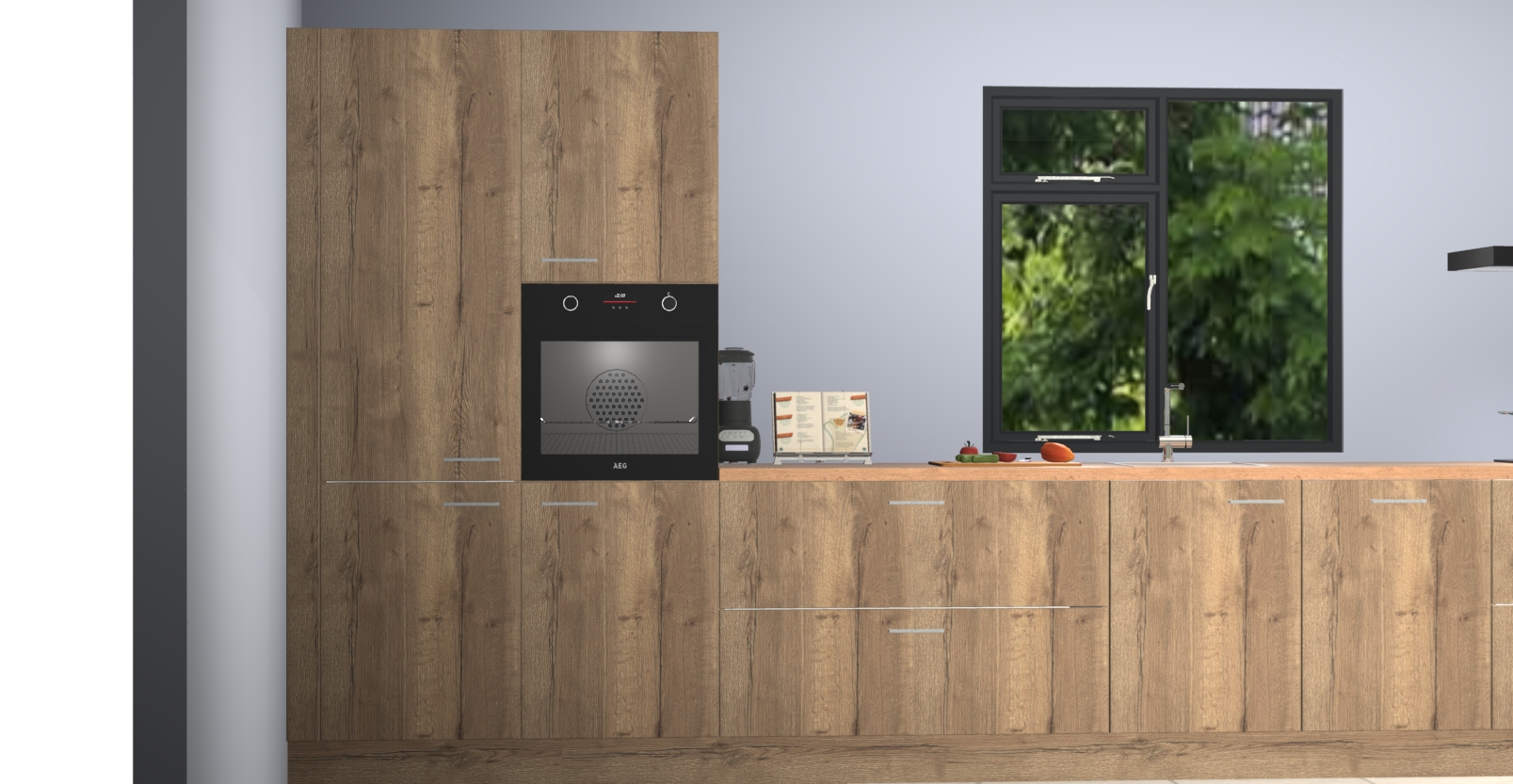 De Chocolade eiken keuken Lille wordt geleverd met vijf inbouwapparaten - een oven, inductiekookplaat, afzuigkap, vaatwasser en koelkast. Maar dat is nog niet alles! Na bestelling kunnen deze apparaten eenvoudig worden geüpgraded naar premium AEG-apparatuur. Bovendien is er zelfs de optie om de oven te vervangen door een combimagnetron of uw inductiekookplaat te vervangen door een kookplaat met geïntegreerde afzuiging.