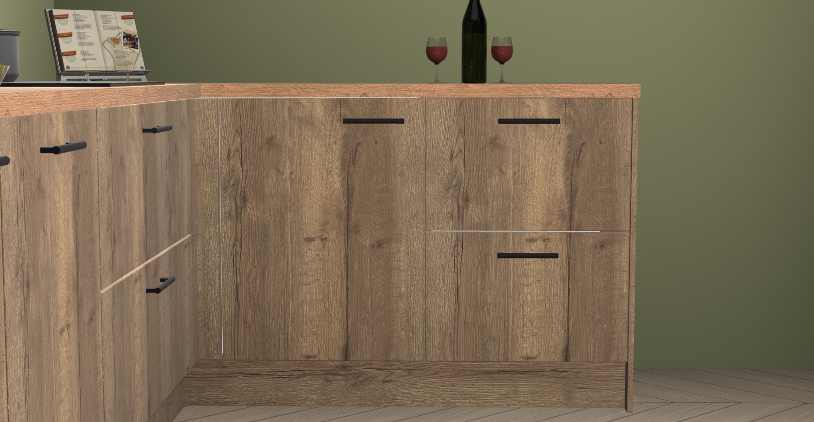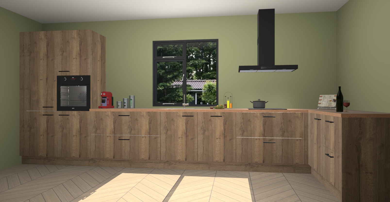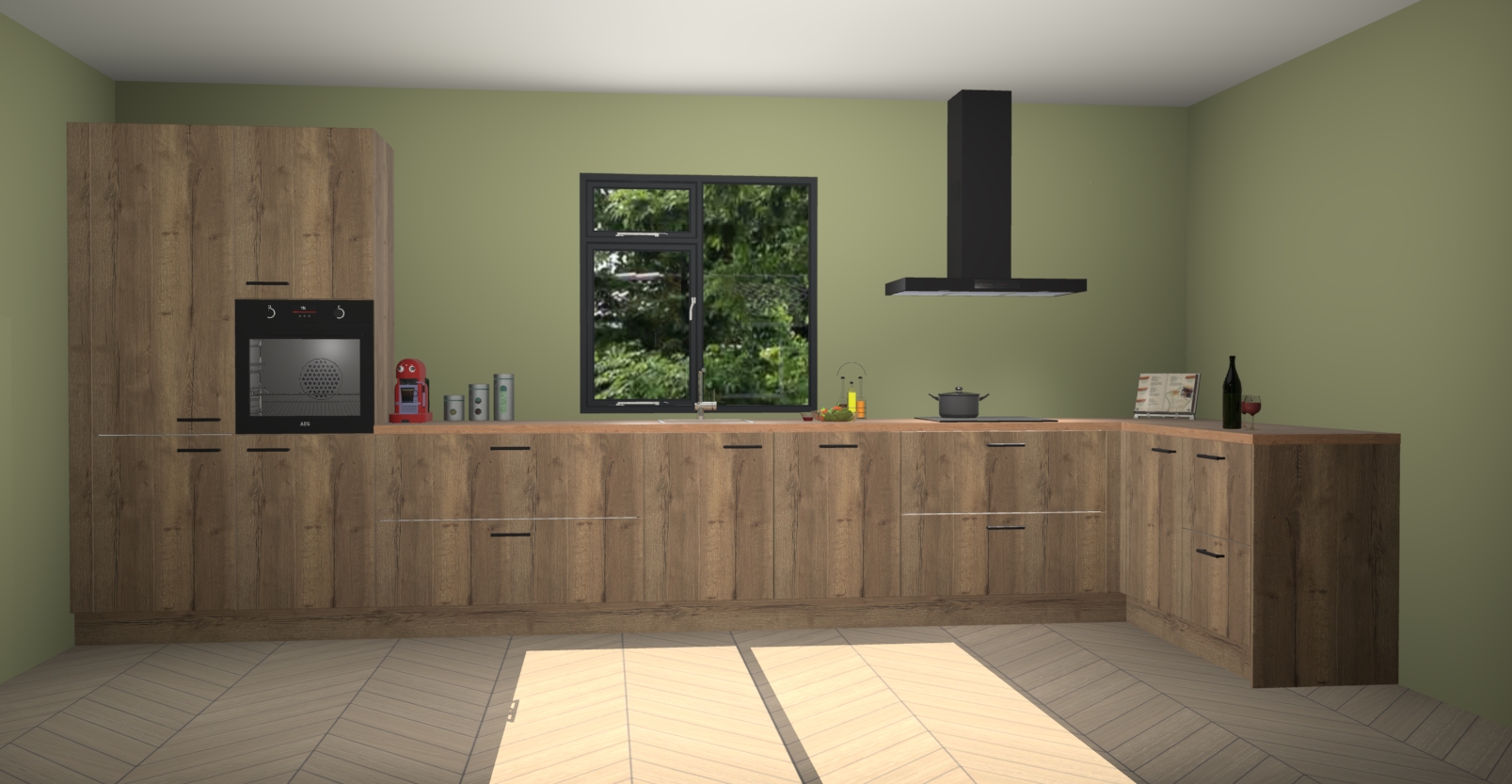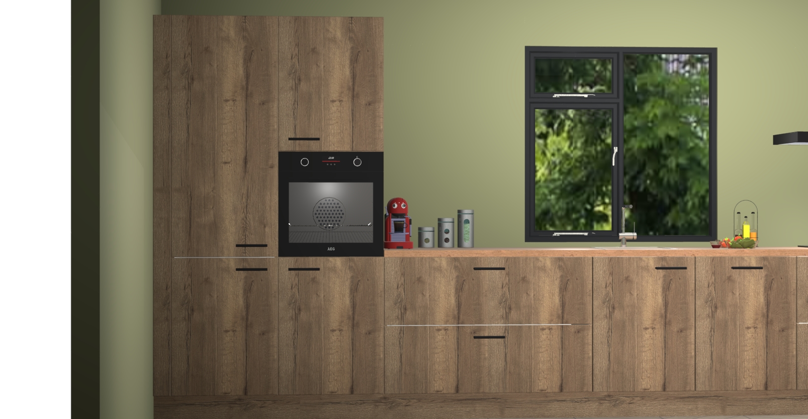 De Chocolade eiken keuken Lille wordt geleverd met vijf inbouwapparaten - een oven, inductiekookplaat, afzuigkap, vaatwasser en koelkast. Maar dat is nog niet alles! Na bestelling kunnen deze apparaten eenvoudig worden geüpgraded naar premium AEG-apparatuur. Bovendien is er zelfs de optie om de oven te vervangen door een combimagnetron of uw inductiekookplaat te vervangen door een kookplaat met geïntegreerde afzuiging.