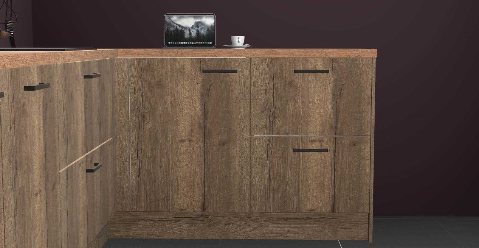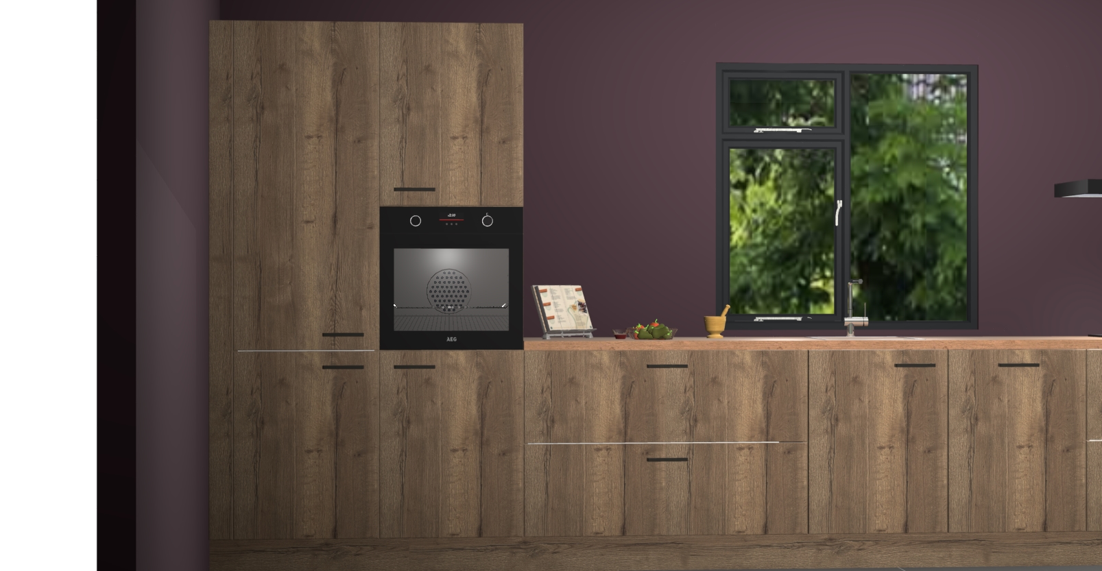 De Chocolade eiken keuken Lille wordt geleverd met vijf inbouwapparaten - een oven, inductiekookplaat, afzuigkap, vaatwasser en koelkast. Maar dat is nog niet alles! Na bestelling kunnen deze apparaten eenvoudig worden geüpgraded naar premium AEG-apparatuur. Bovendien is er zelfs de optie om de oven te vervangen door een combimagnetron of uw inductiekookplaat te vervangen door een kookplaat met geïntegreerde afzuiging.