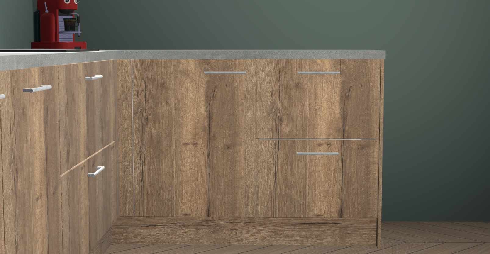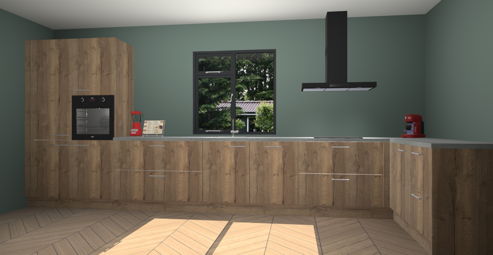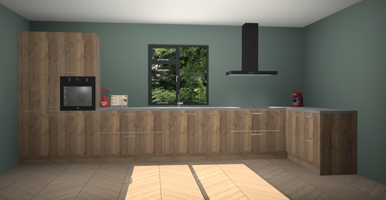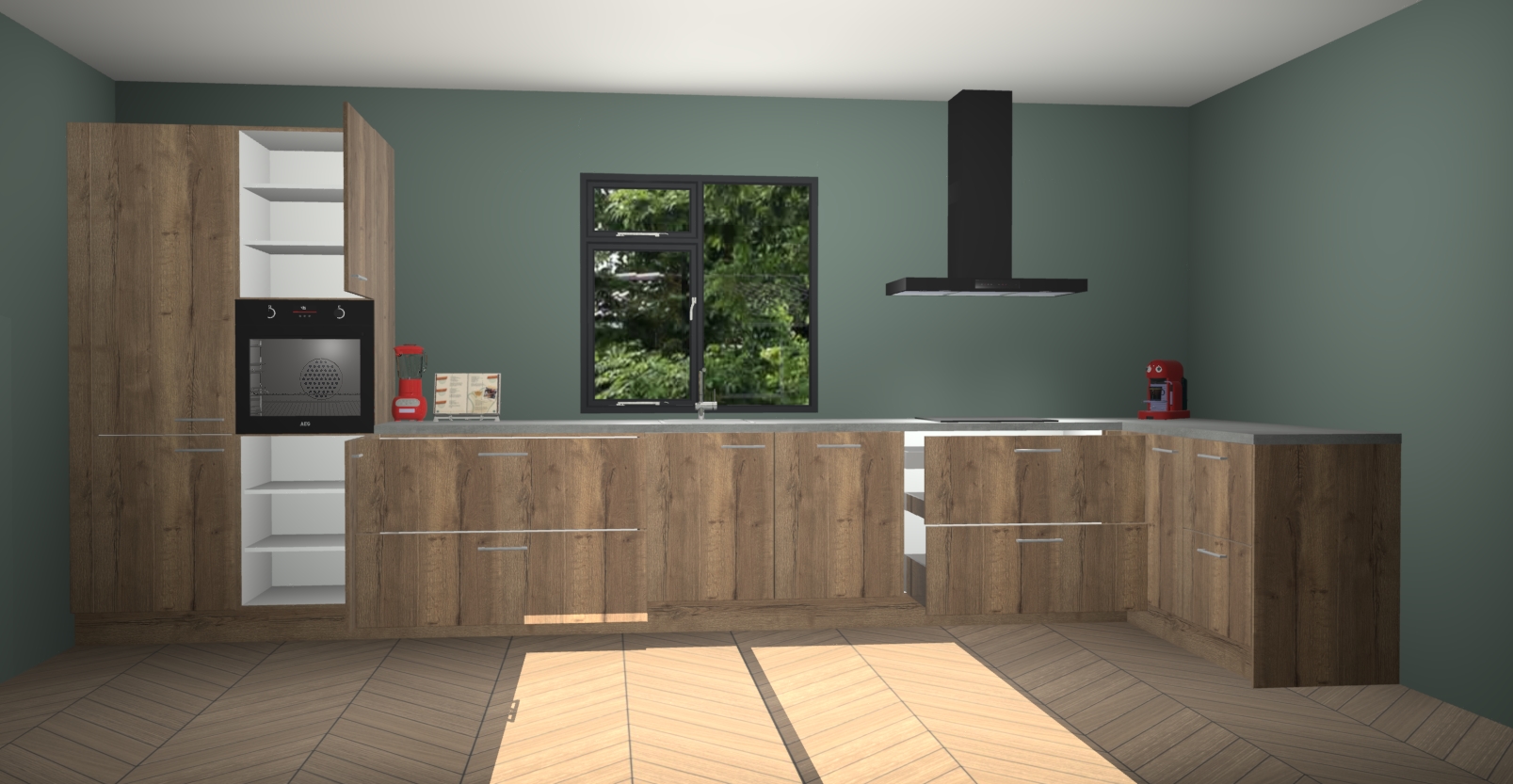 De Chocolade eiken keuken Lille wordt geleverd met vijf inbouwapparaten - een oven, inductiekookplaat, afzuigkap, vaatwasser en koelkast. Maar dat is nog niet alles! Na bestelling kunnen deze apparaten eenvoudig worden geüpgraded naar premium AEG-apparatuur. Bovendien is er zelfs de optie om de oven te vervangen door een combimagnetron of uw inductiekookplaat te vervangen door een kookplaat met geïntegreerde afzuiging.
