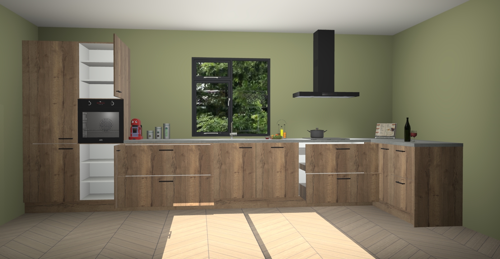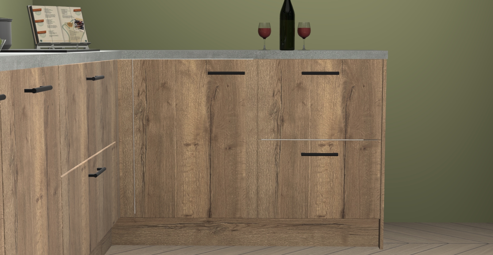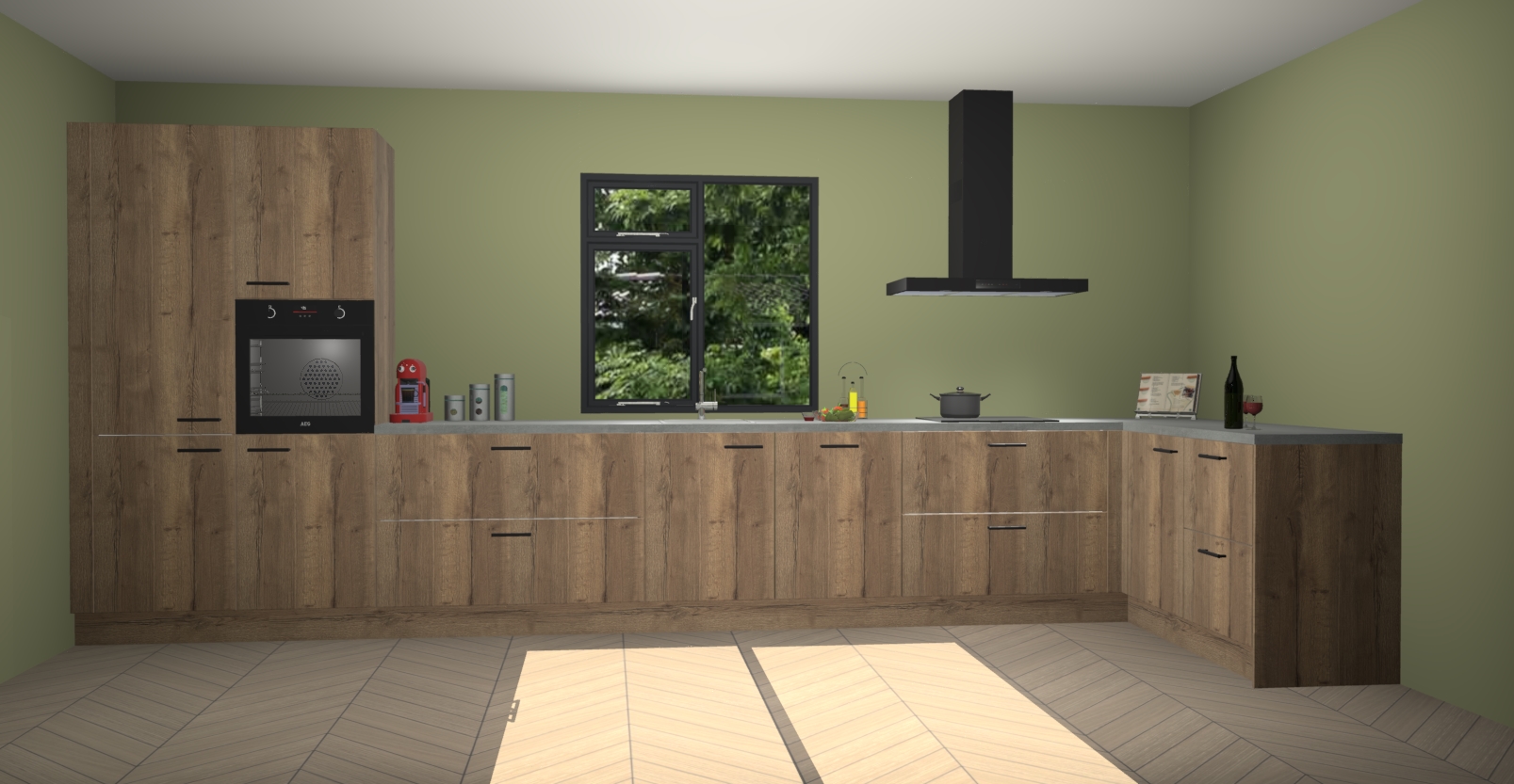 De Chocolade eiken keuken Lille wordt geleverd met vijf inbouwapparaten - een oven, inductiekookplaat, afzuigkap, vaatwasser en koelkast. Maar dat is nog niet alles! Na bestelling kunnen deze apparaten eenvoudig worden geüpgraded naar premium AEG-apparatuur. Bovendien is er zelfs de optie om de oven te vervangen door een combimagnetron of uw inductiekookplaat te vervangen door een kookplaat met geïntegreerde afzuiging.