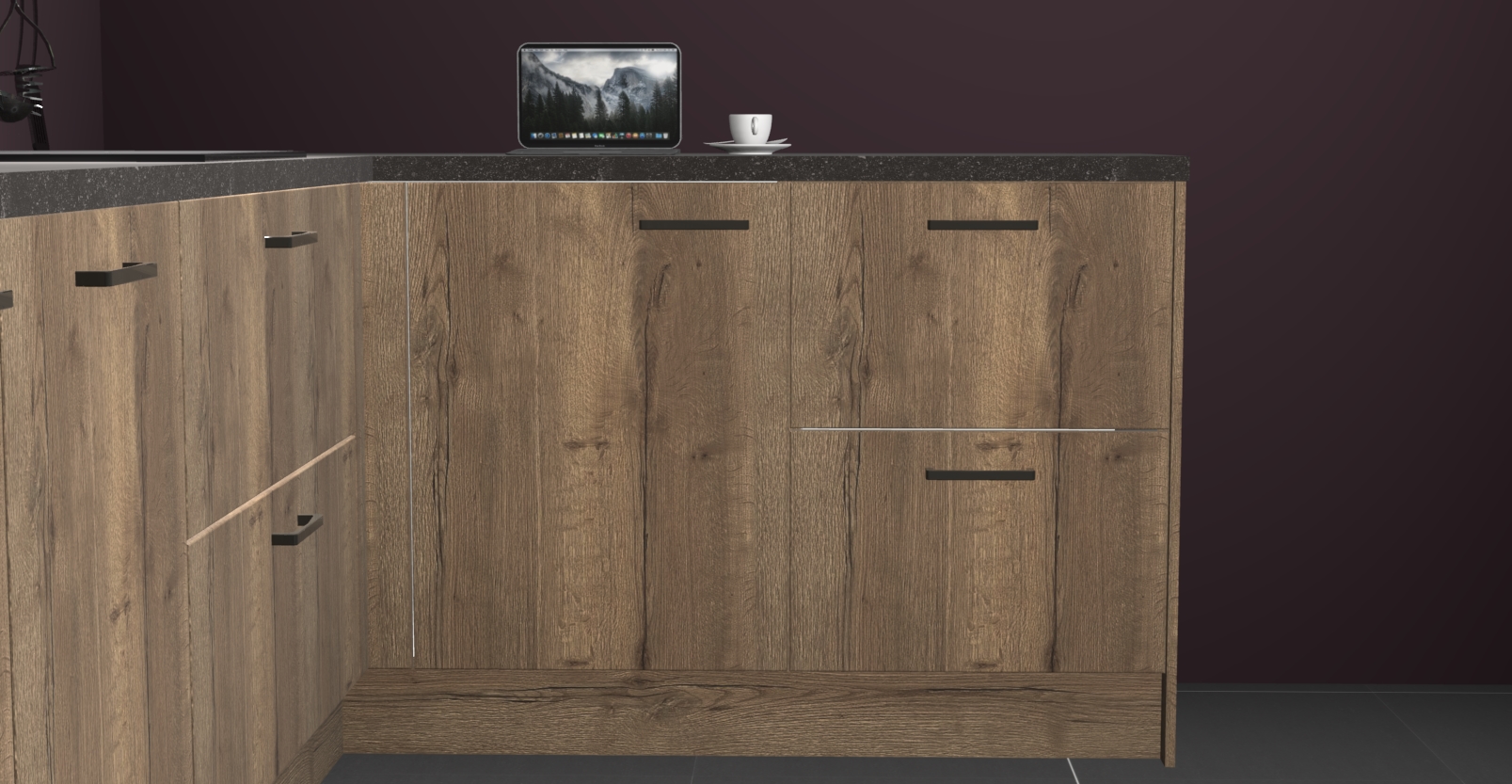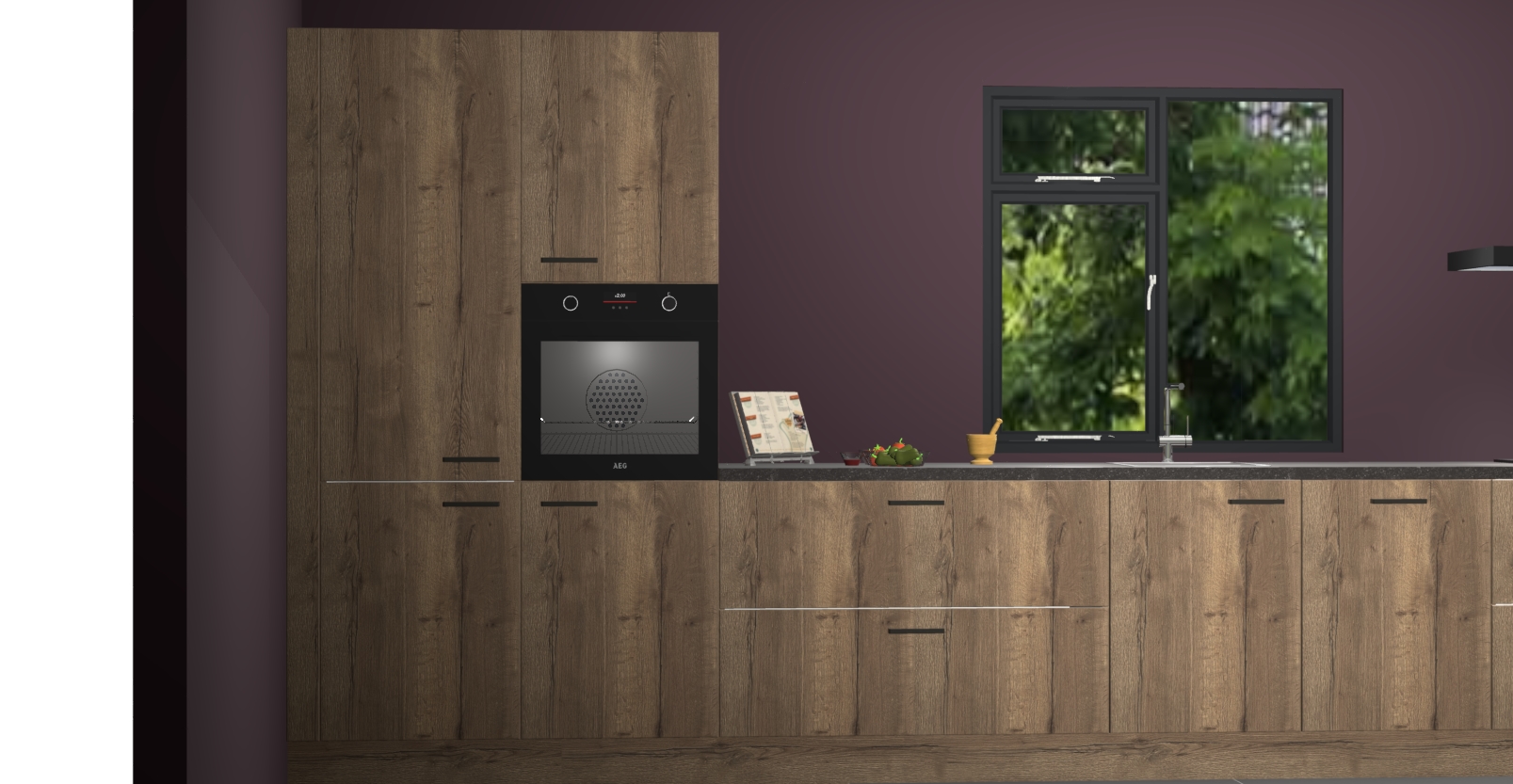 De Chocolade eiken keuken Lille wordt geleverd met vijf inbouwapparaten - een oven, inductiekookplaat, afzuigkap, vaatwasser en koelkast. Maar dat is nog niet alles! Na bestelling kunnen deze apparaten eenvoudig worden geüpgraded naar premium AEG-apparatuur. Bovendien is er zelfs de optie om de oven te vervangen door een combimagnetron of uw inductiekookplaat te vervangen door een kookplaat met geïntegreerde afzuiging.