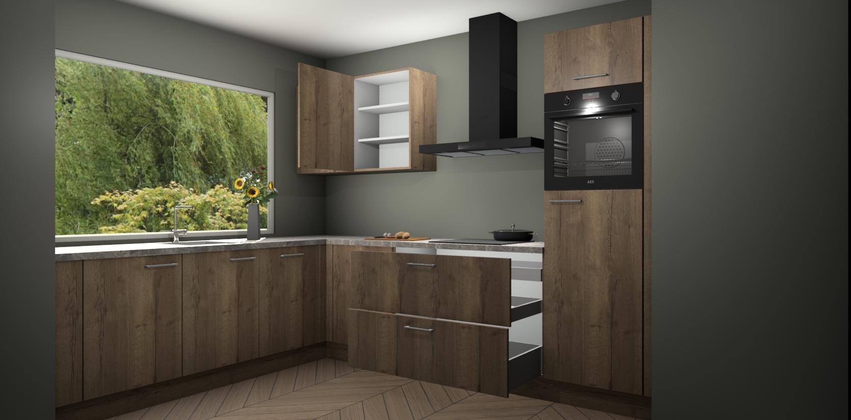 Bent u op zoek naar een onberispelijk keukenontwerp dat Duitse precisie en uitmuntende architectuur ademt? Zoek niet verder - de chocolade eiken keuken Limonos biedt de perfecte moderne mix van stijl en functionaliteit.