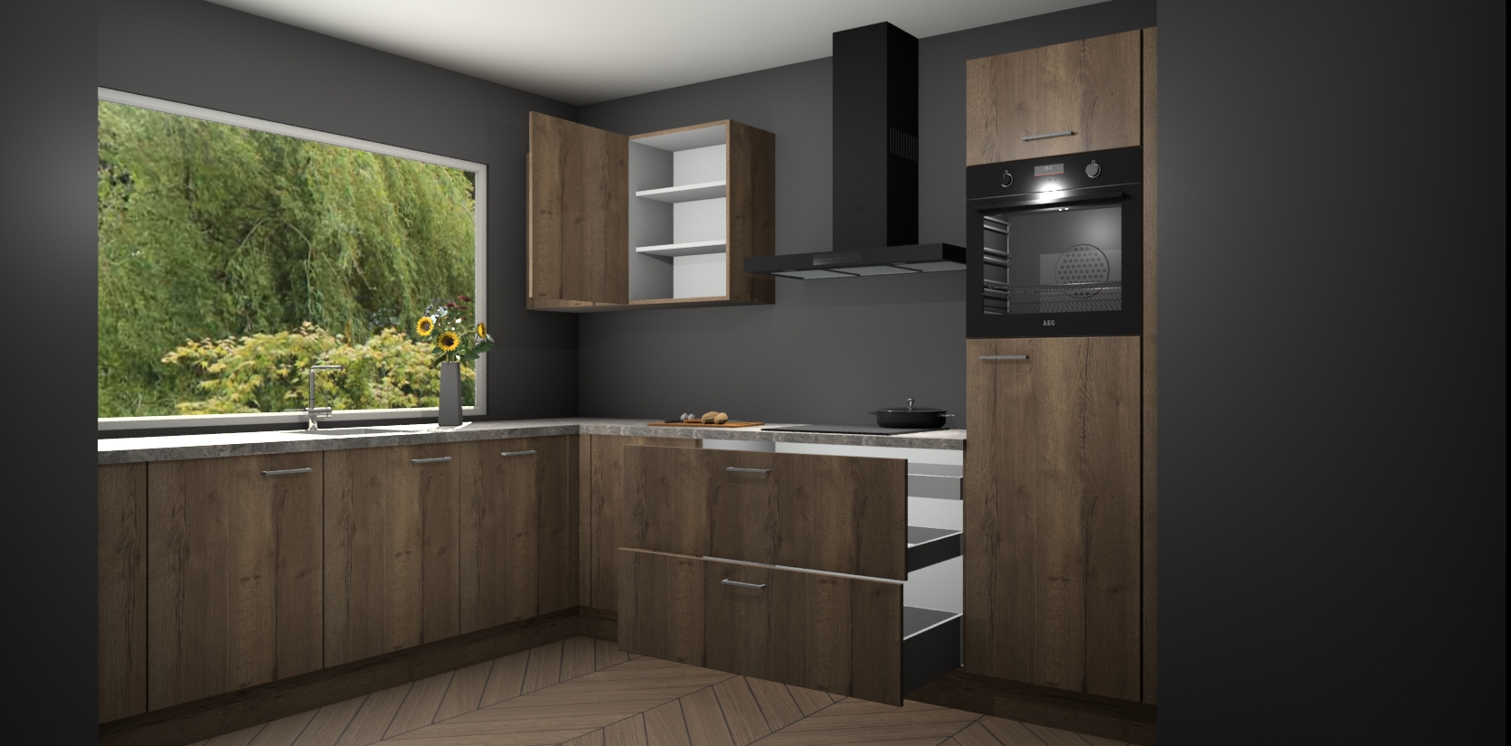 Bent u op zoek naar een onberispelijk keukenontwerp dat Duitse precisie en uitmuntende architectuur ademt? Zoek niet verder - de chocolade eiken keuken Limonos biedt de perfecte moderne mix van stijl en functionaliteit.