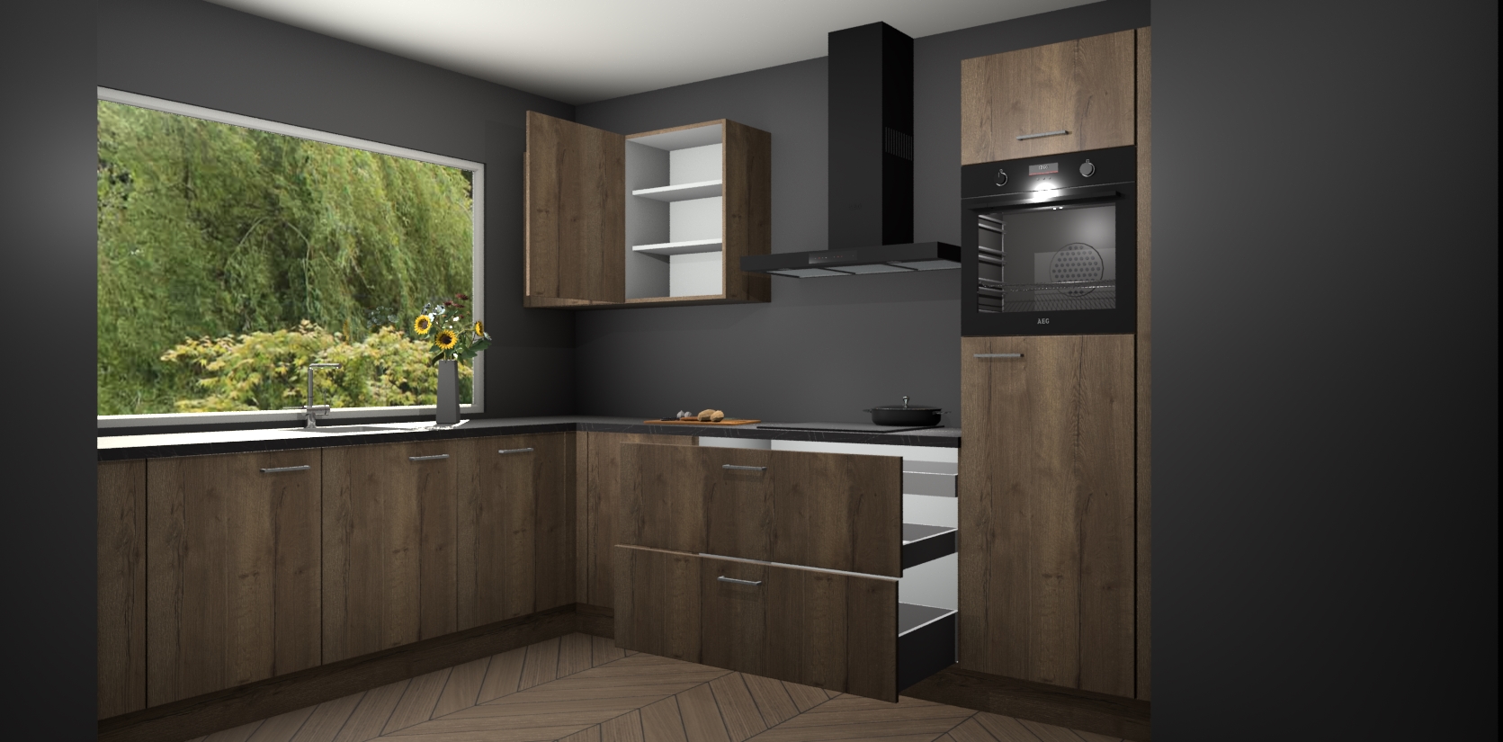 Bent u op zoek naar een onberispelijk keukenontwerp dat Duitse precisie en uitmuntende architectuur ademt? Zoek niet verder - de chocolade eiken keuken Limonos biedt de perfecte moderne mix van stijl en functionaliteit.
