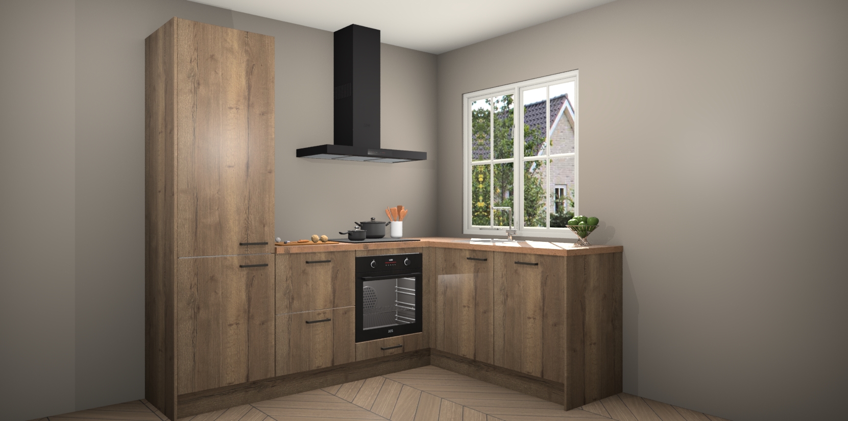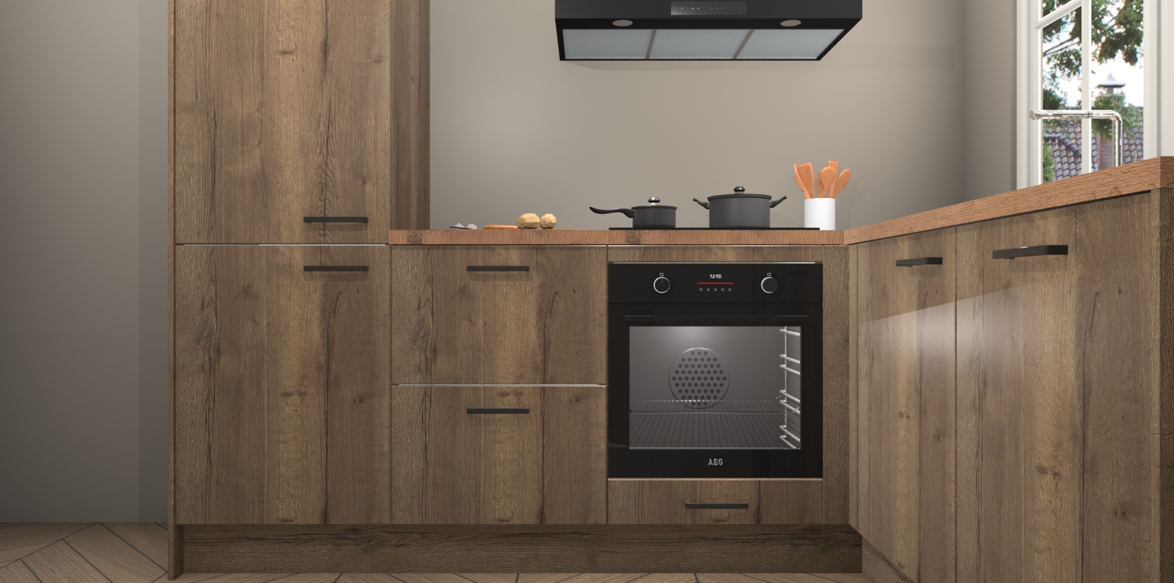 Met de Chocolade Eiken keuken Linz krijgt u 5 op maat gemaakte apparaten: een oven, inductiekookplaat, afzuigkap, vaatwasser en koelkast die na bestelling makkelijk worden geüpgraded naar AEG-producten. Met de zacht sluitende deuren, bent u verzekerd van eenvoudige bediening in stilte. Het kastmeubilair wordt alvast pre-assemblage geleverd waardoor u sneller met het installeren begint. Ook zijn alle deuren voorzien van softclose zodat er geen sporen op de lade blijven als u ze dicht doet. Bovendien hoeft u bij ons geen twijfels of verassingen te hebben: we hebben een vaste lage prijs waardoor u weet wat u mag verwachten bij elke bestelling.