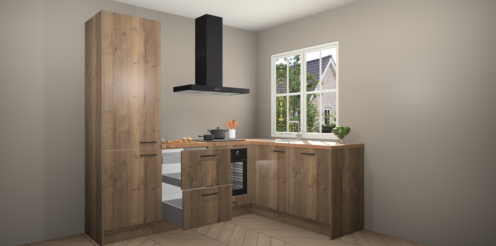Het grote voordeel is dat uw Chocolade Eiken keuken Linz wordt geleverd met een beperkte levertijd van slechts 7 weken! Daarom moet u er snel bij zijn; want als u dit fantastische meubilair mist, kan niets anders dan spijt voelen. Ga direct aan de slag met uw droomkeuken door nu de Chocolade Eiken keuken Linz te bestellen - duizend woorden plaatjes in één woord: perfectie.