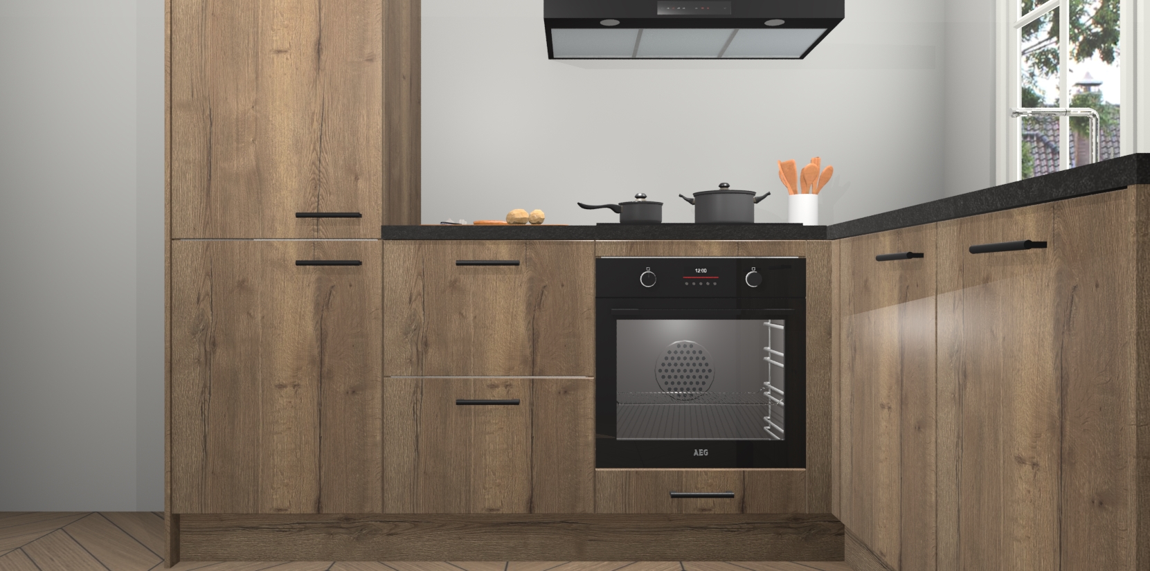 Met de Chocolade Eiken keuken Linz krijgt u 5 op maat gemaakte apparaten: een oven, inductiekookplaat, afzuigkap, vaatwasser en koelkast die na bestelling makkelijk worden geüpgraded naar AEG-producten. Met de zacht sluitende deuren, bent u verzekerd van eenvoudige bediening in stilte. Het kastmeubilair wordt alvast pre-assemblage geleverd waardoor u sneller met het installeren begint. Ook zijn alle deuren voorzien van softclose zodat er geen sporen op de lade blijven als u ze dicht doet. Bovendien hoeft u bij ons geen twijfels of verassingen te hebben: we hebben een vaste lage prijs waardoor u weet wat u mag verwachten bij elke bestelling.