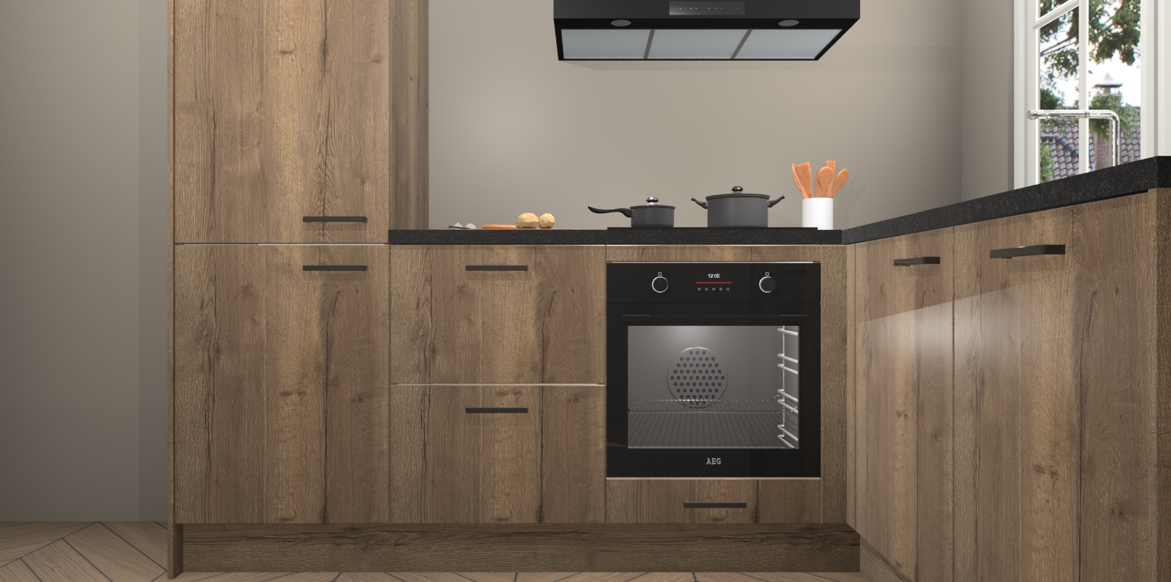 Met de Chocolade Eiken keuken Linz krijgt u 5 op maat gemaakte apparaten: een oven, inductiekookplaat, afzuigkap, vaatwasser en koelkast die na bestelling makkelijk worden geüpgraded naar AEG-producten. Met de zacht sluitende deuren, bent u verzekerd van eenvoudige bediening in stilte. Het kastmeubilair wordt alvast pre-assemblage geleverd waardoor u sneller met het installeren begint. Ook zijn alle deuren voorzien van softclose zodat er geen sporen op de lade blijven als u ze dicht doet. Bovendien hoeft u bij ons geen twijfels of verassingen te hebben: we hebben een vaste lage prijs waardoor u weet wat u mag verwachten bij elke bestelling.