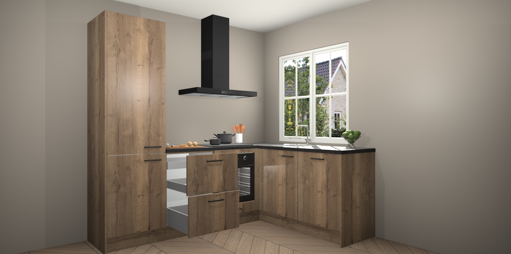 Het grote voordeel is dat uw Chocolade Eiken keuken Linz wordt geleverd met een beperkte levertijd van slechts 7 weken! Daarom moet u er snel bij zijn; want als u dit fantastische meubilair mist, kan niets anders dan spijt voelen. Ga direct aan de slag met uw droomkeuken door nu de Chocolade Eiken keuken Linz te bestellen - duizend woorden plaatjes in één woord: perfectie.