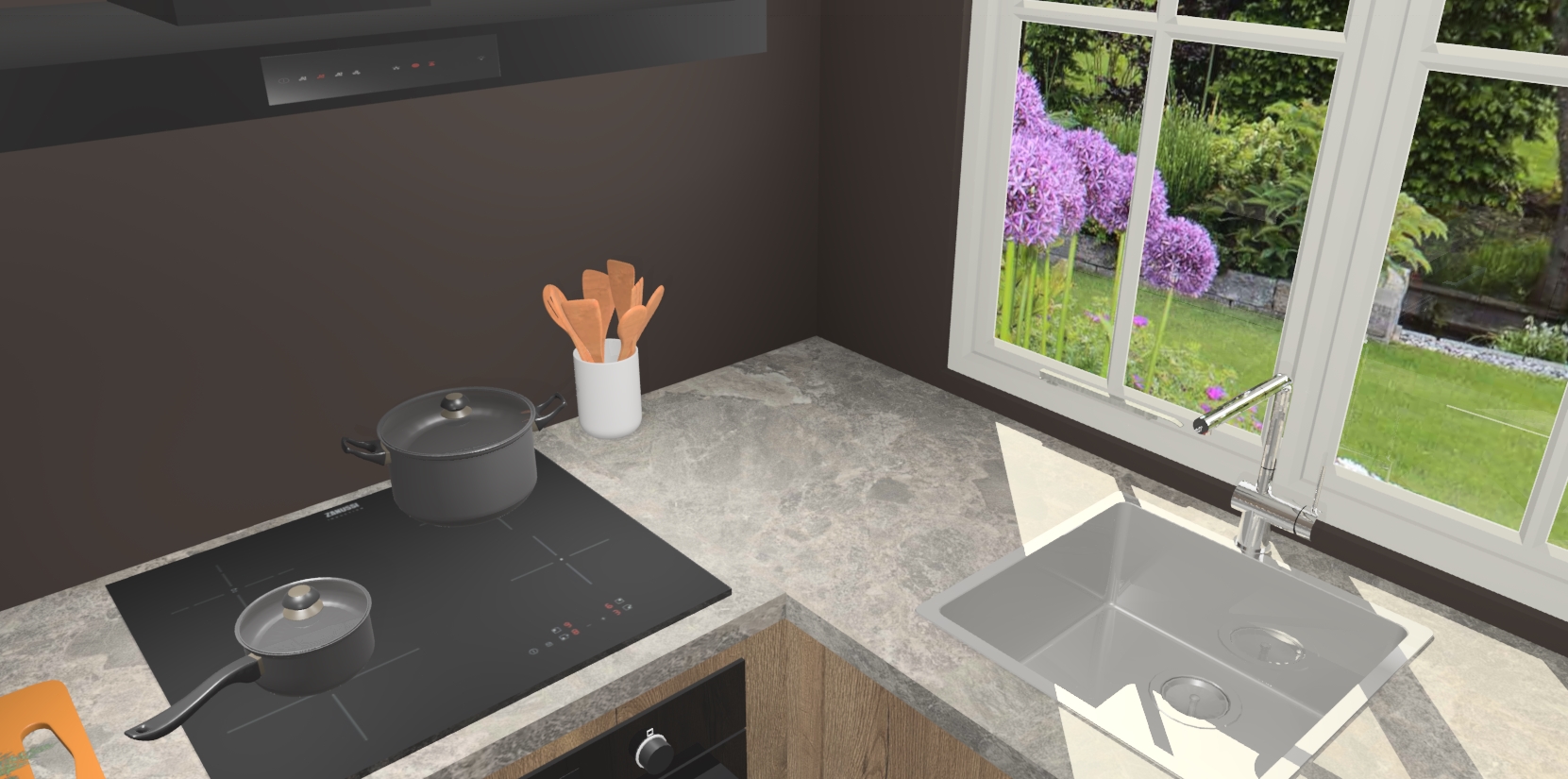 De Chocolade Eiken keuken Linz is de perfecte keuze voor uw nieuwe moderne en tijdloze keuken. Ga voor moderne en tijdloze elegantie in uw keuken. De prachtige hoekkeuken biedt een verfrissende kijk op de manier waarop we ons vertrouwde keukenontwerp kunnen aanpassen in een nieuwe stijl. Één blik om alles te zien: zo mooi dat het bijna magisch lijkt.