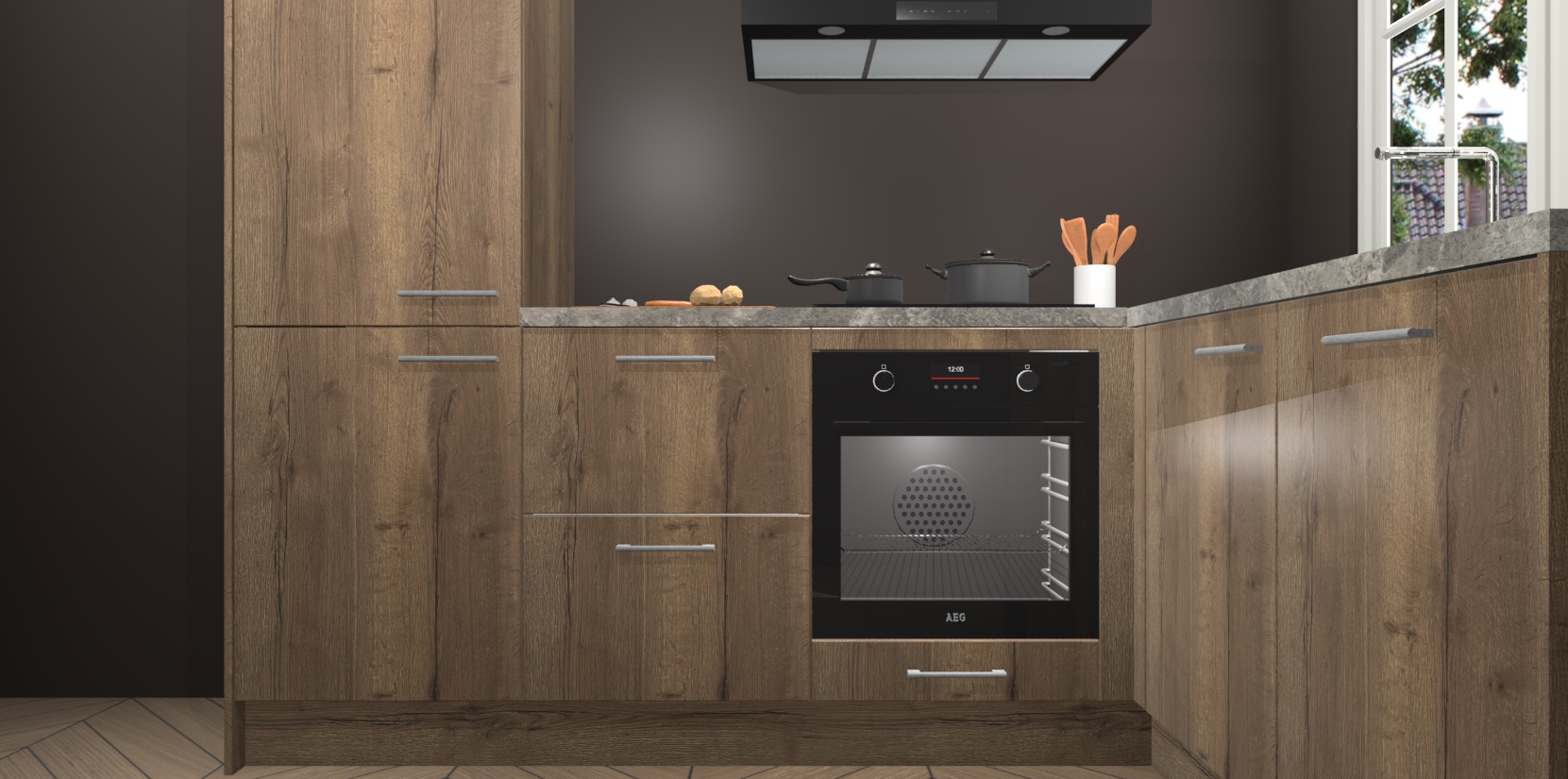 Met de Chocolade Eiken keuken Linz krijgt u 5 op maat gemaakte apparaten: een oven, inductiekookplaat, afzuigkap, vaatwasser en koelkast die na bestelling makkelijk worden geüpgraded naar AEG-producten. Met de zacht sluitende deuren, bent u verzekerd van eenvoudige bediening in stilte. Het kastmeubilair wordt alvast pre-assemblage geleverd waardoor u sneller met het installeren begint. Ook zijn alle deuren voorzien van softclose zodat er geen sporen op de lade blijven als u ze dicht doet. Bovendien hoeft u bij ons geen twijfels of verassingen te hebben: we hebben een vaste lage prijs waardoor u weet wat u mag verwachten bij elke bestelling.