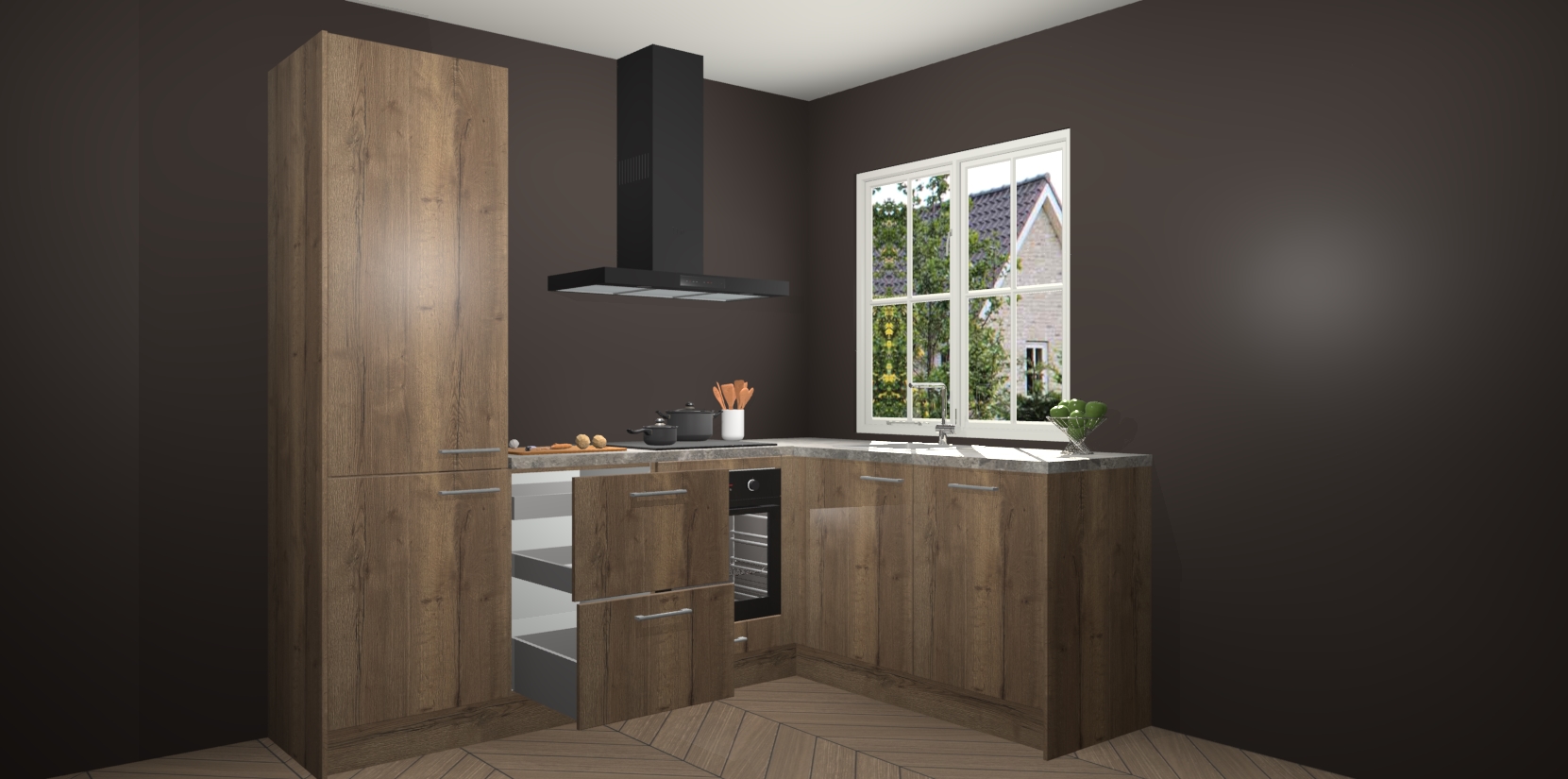 Het grote voordeel is dat uw Chocolade Eiken keuken Linz wordt geleverd met een beperkte levertijd van slechts 7 weken! Daarom moet u er snel bij zijn; want als u dit fantastische meubilair mist, kan niets anders dan spijt voelen. Ga direct aan de slag met uw droomkeuken door nu de Chocolade Eiken keuken Linz te bestellen - duizend woorden plaatjes in één woord: perfectie.