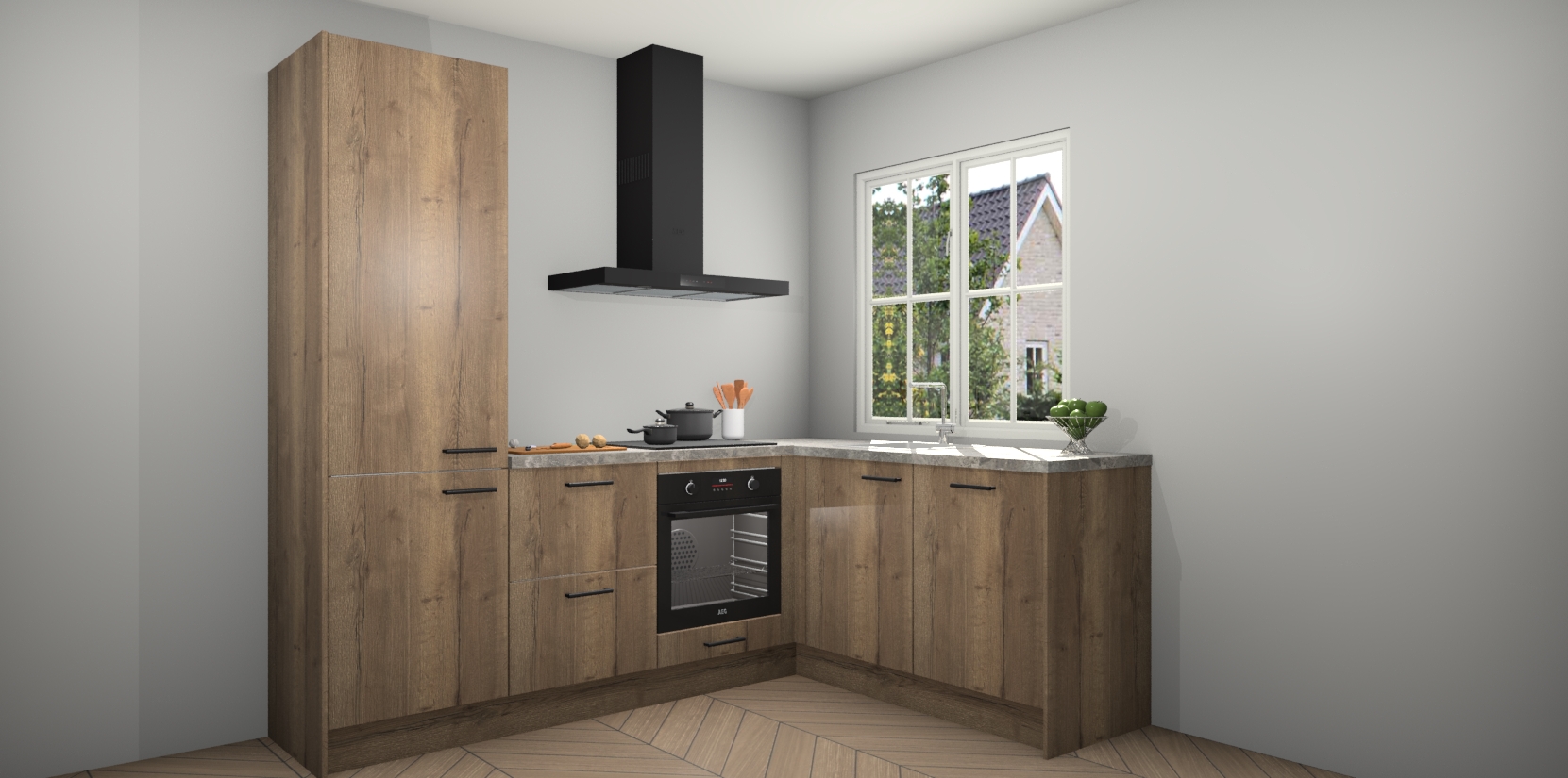 Met de Chocolade Eiken keuken Linz krijgt u 5 op maat gemaakte apparaten: een oven, inductiekookplaat, afzuigkap, vaatwasser en koelkast die na bestelling makkelijk worden geüpgraded naar AEG-producten. Met de zacht sluitende deuren, bent u verzekerd van eenvoudige bediening in stilte. Het kastmeubilair wordt alvast pre-assemblage geleverd waardoor u sneller met het installeren begint. Ook zijn alle deuren voorzien van softclose zodat er geen sporen op de lade blijven als u ze dicht doet. Bovendien hoeft u bij ons geen twijfels of verassingen te hebben: we hebben een vaste lage prijs waardoor u weet wat u mag verwachten bij elke bestelling.