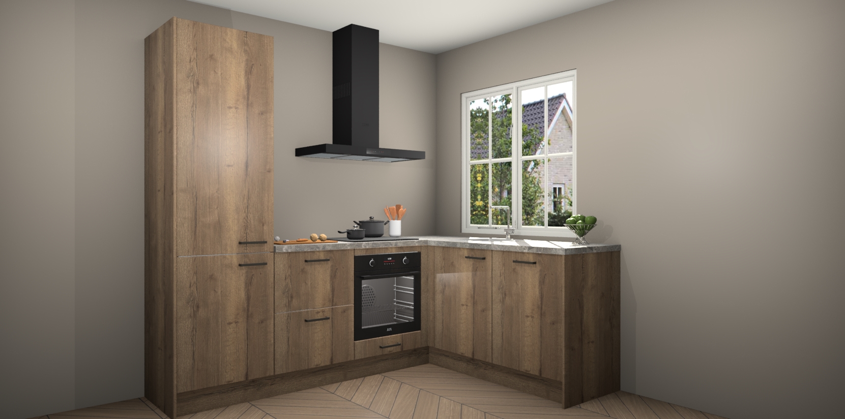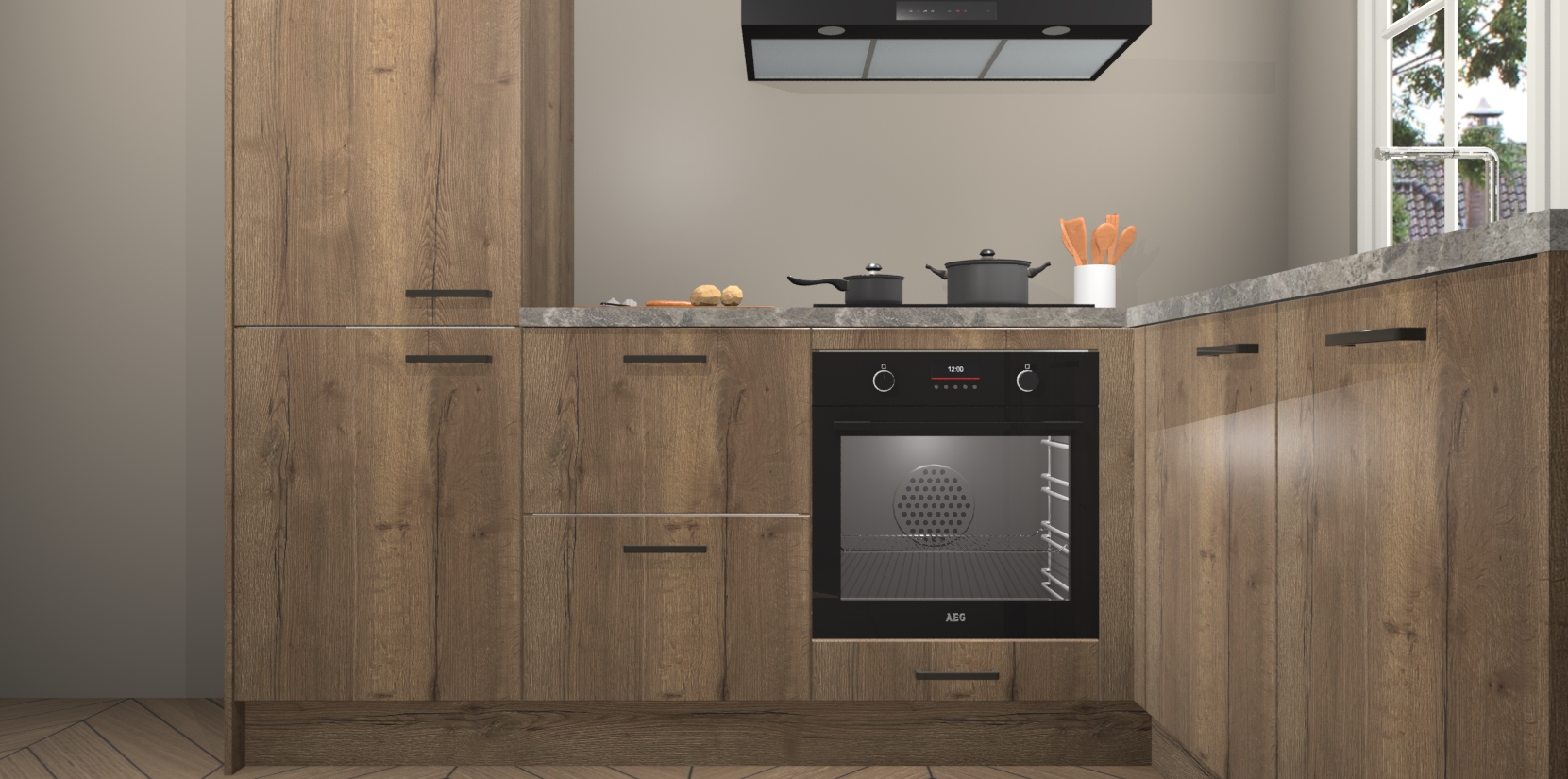 Met de Chocolade Eiken keuken Linz krijgt u 5 op maat gemaakte apparaten: een oven, inductiekookplaat, afzuigkap, vaatwasser en koelkast die na bestelling makkelijk worden geüpgraded naar AEG-producten. Met de zacht sluitende deuren, bent u verzekerd van eenvoudige bediening in stilte. Het kastmeubilair wordt alvast pre-assemblage geleverd waardoor u sneller met het installeren begint. Ook zijn alle deuren voorzien van softclose zodat er geen sporen op de lade blijven als u ze dicht doet. Bovendien hoeft u bij ons geen twijfels of verassingen te hebben: we hebben een vaste lage prijs waardoor u weet wat u mag verwachten bij elke bestelling.