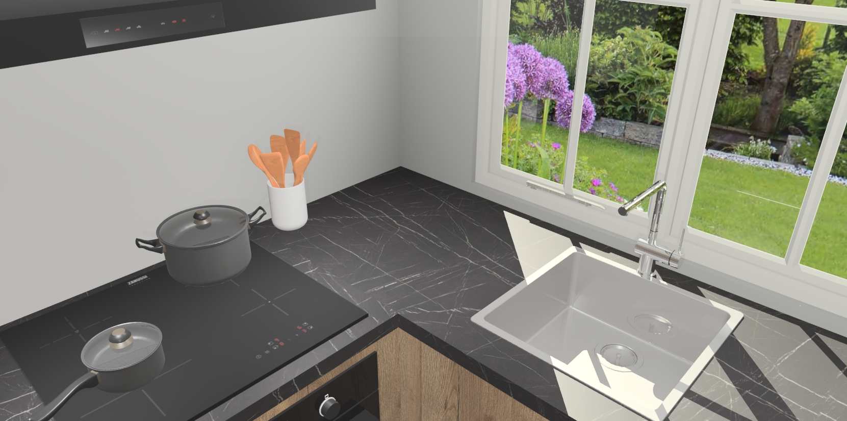 - Bij een hoekwerkblad zijn de hoeken in gevreesd en op maat gemaakt