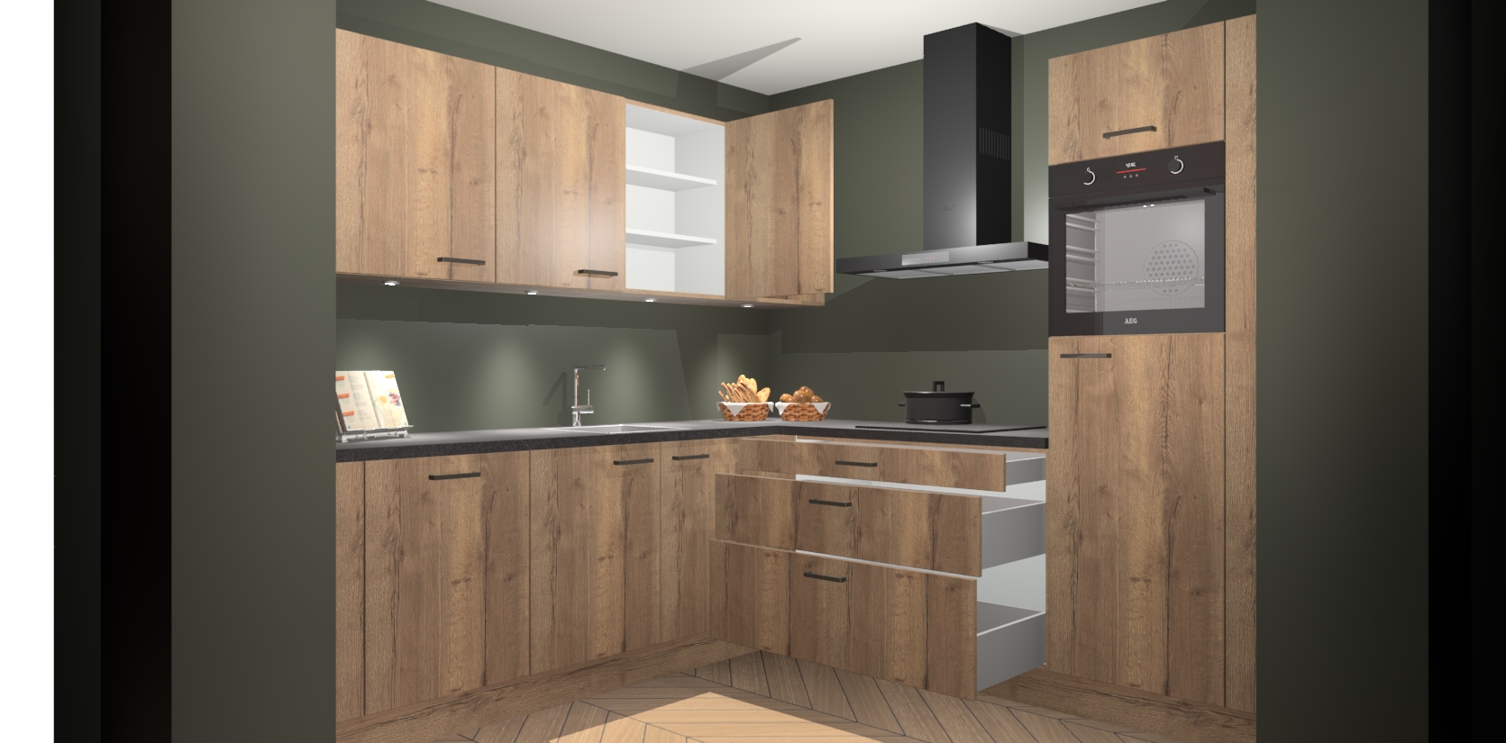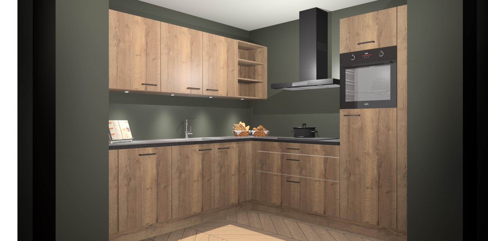 Met een modern, tijdloos design en ruime opslagruimte, zult u zich in no-time thuis voelen in uw nieuwe keuken. Uw leven wordt eenvoudiger met de soft-close deuren die voor het ultieme stille comfort zorgen - geen geluid dat u stoort terwijl u kookt. Ook is de keuken voorzien van 5 ingebouwde apparaten: een oven, inductie kookplaat, afzuigkap, vaatwasser en koelkast. Deze kunnen gemakkelijk na bestelling worden bijgewerkt naar AEG - waardoor uw luxe ervaring compleet is.